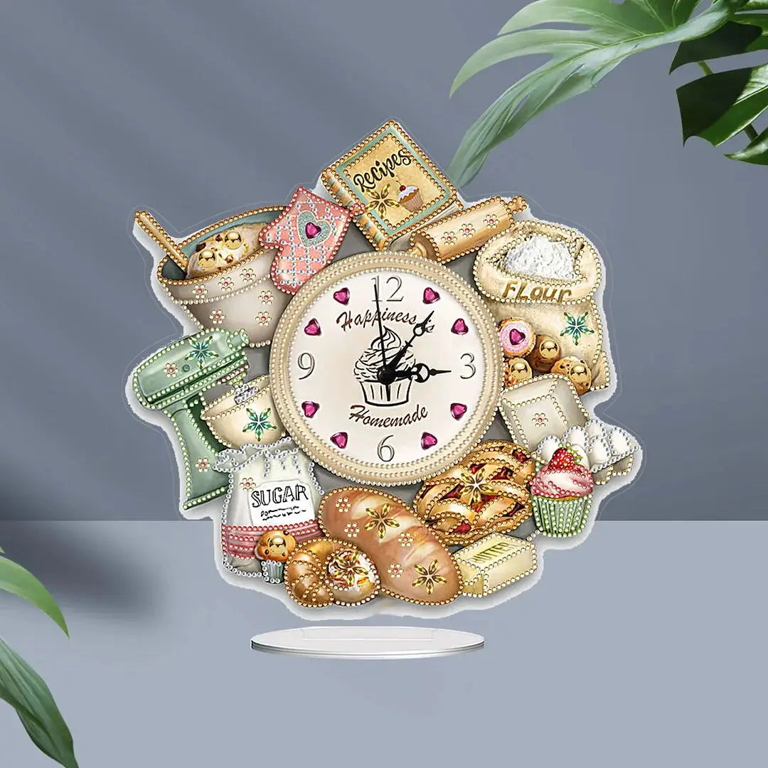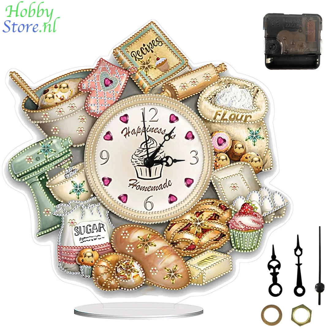 Diamond Painting Klok Bake Time met kristallen steentjes – Uniek tafelornament