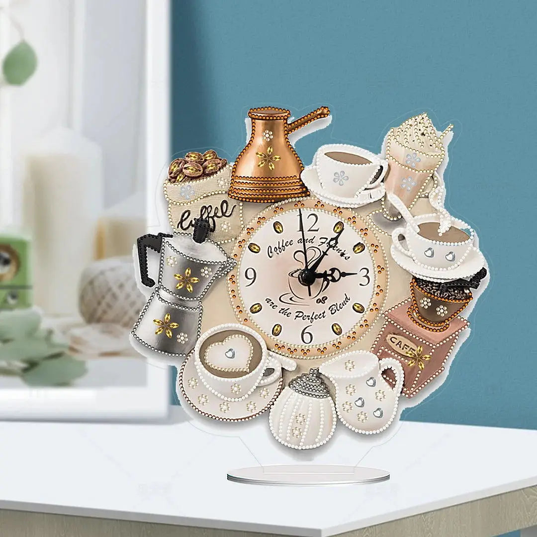 Diamond Painting Klok Koffie Tijd Kristal Ornament met Speciale Steentjes