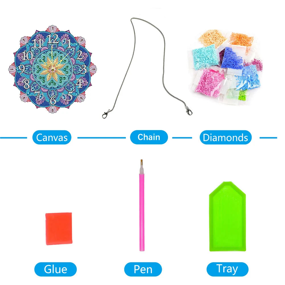Diamond Painting Klok Mandala Mozaïek Kunstwerk met Kristallen Steentjes