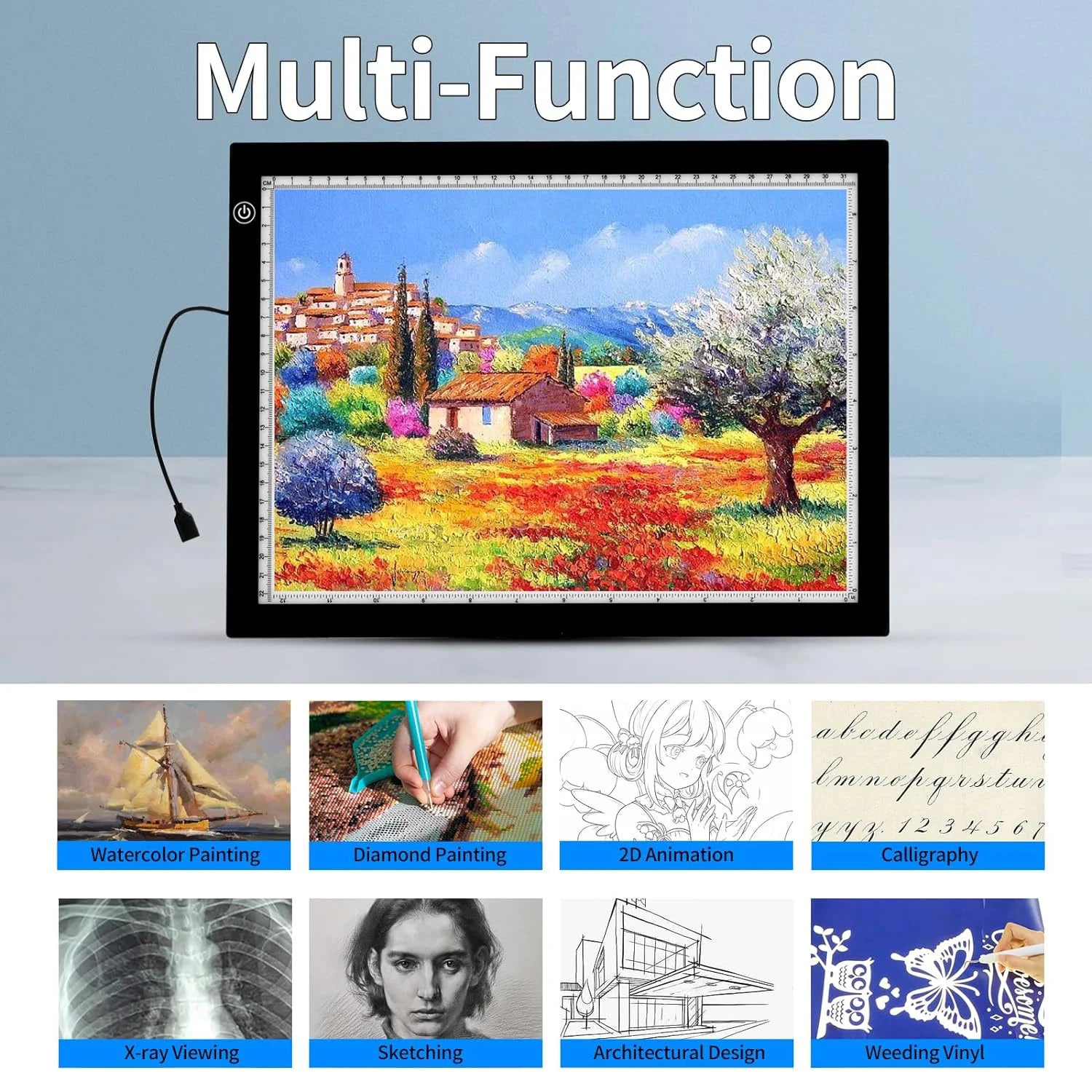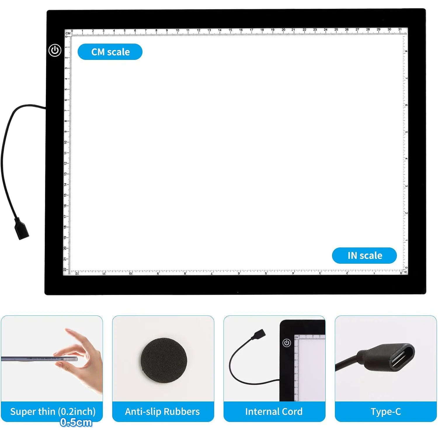 Breng jouw Diamond Painting ervaring naar een hoger niveau met deze Diamond Painting Lightpad A4. Deze draadloze LED lichtpad is ideaal voor nauwkeurige en comfortabele plaatsing van Diamond Painting steentjes, maar ook perfect geschikt voor tekenen, schetsen, kalligrafie en andere creatieve hobbyprojecten.