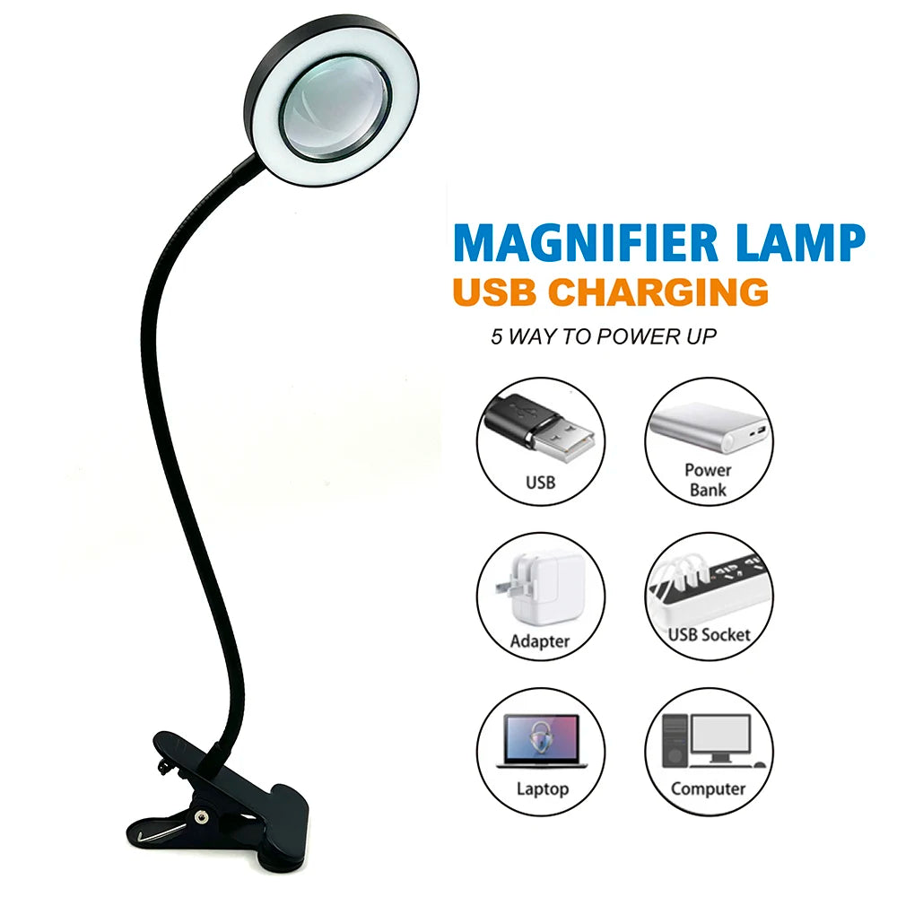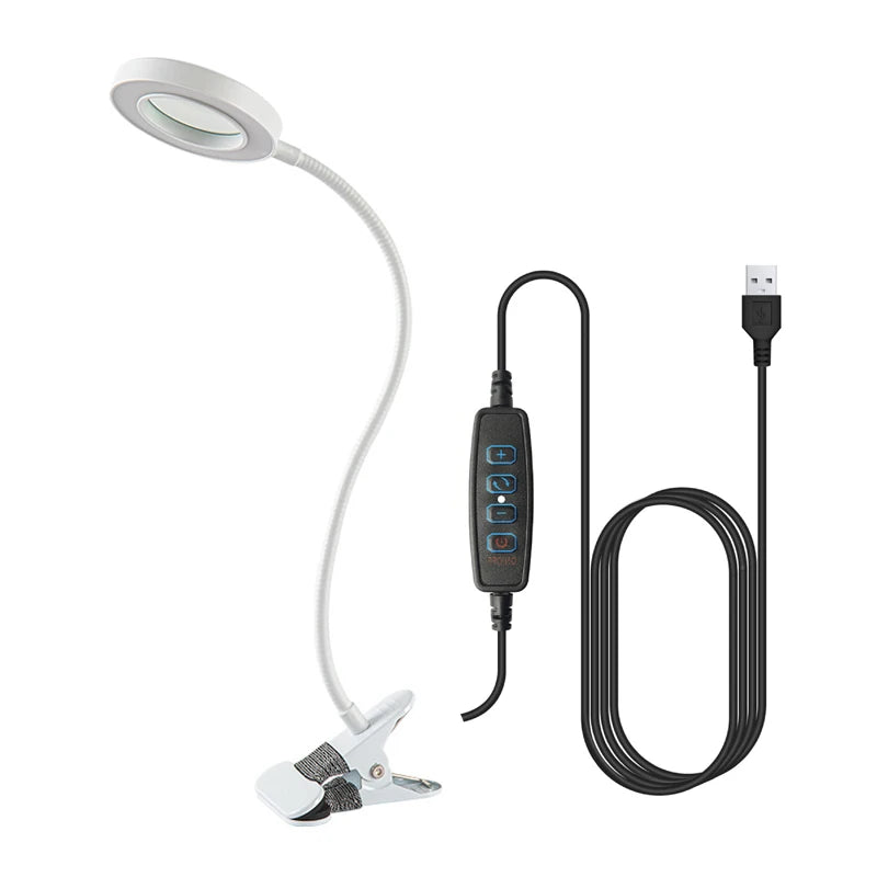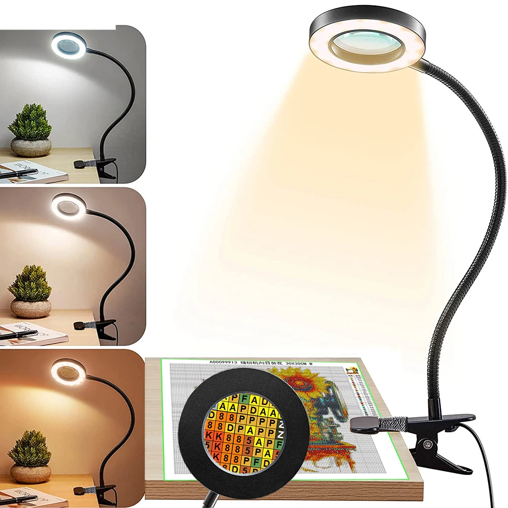Diamond Painting Loeplamp met 5x Vergroting – LED Verlichting, 3 Lichtstanden & 10 Helderniveaus – USB Aangedreven