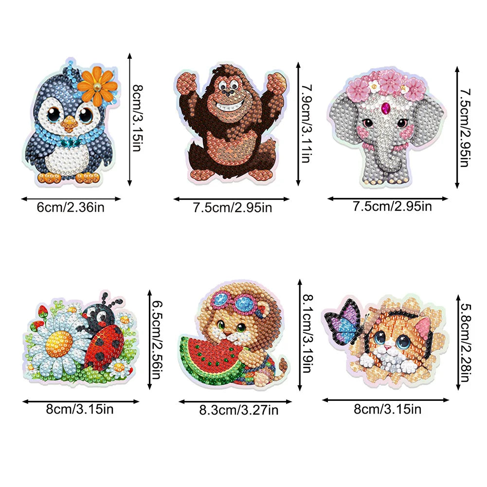 Diamond Painting Magneten - Set van 6 Dieren Magneten voor Koelkast en Decoratie