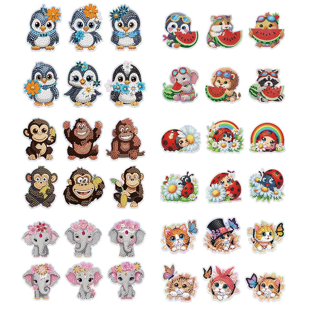 Diamond Painting Magneten – Set van 6 Dieren (Pinguïns, Apen, Katten, Olifanten & Meer)