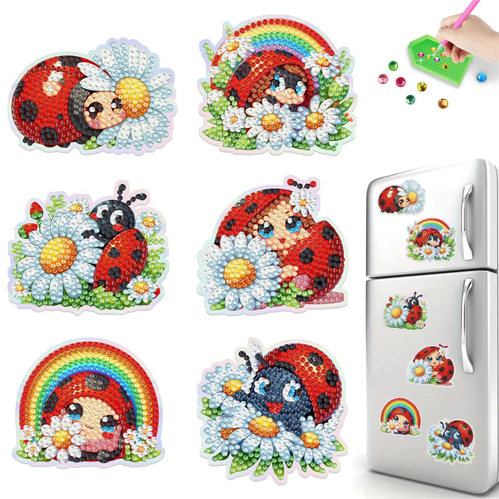 Breng kleur en creativiteit in je interieur met deze set van 6 Diamond Painting Magneten met schattige dierenontwerpen. Elke magneet is zorgvuldig afgewerkt met glinsterende steentjes en toont een uniek dier, zoals pinguïns, apen, olifanten, katten en lieveheersbeestjes.