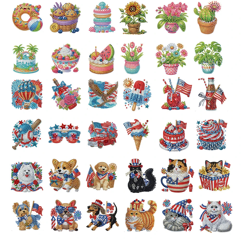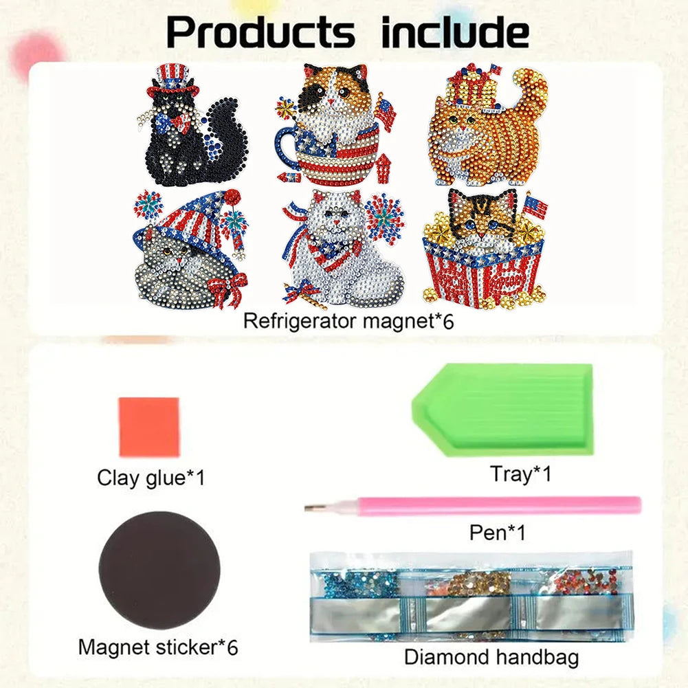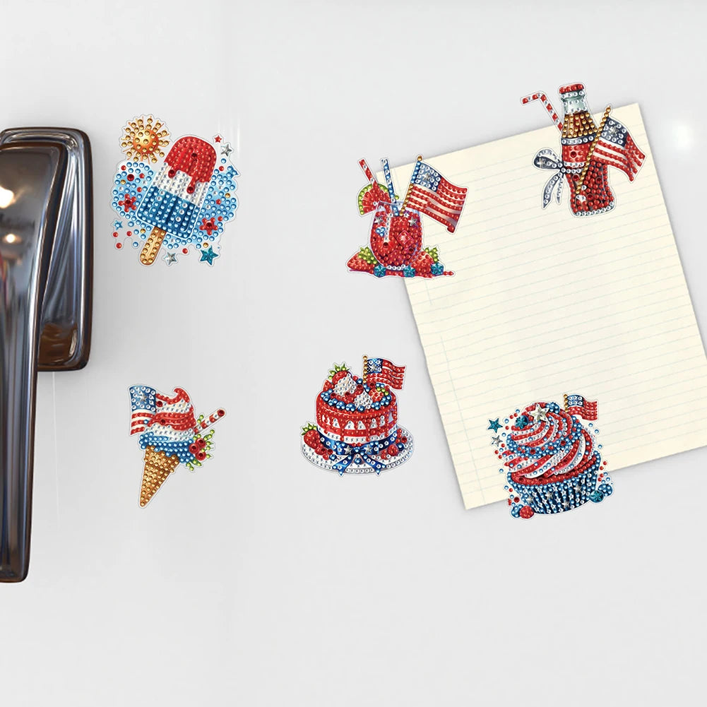 Diamond Painting Magneten – Set van 6 Koelkastmagneten (Eten, Bloemen of Amerikaanse Thema's)
