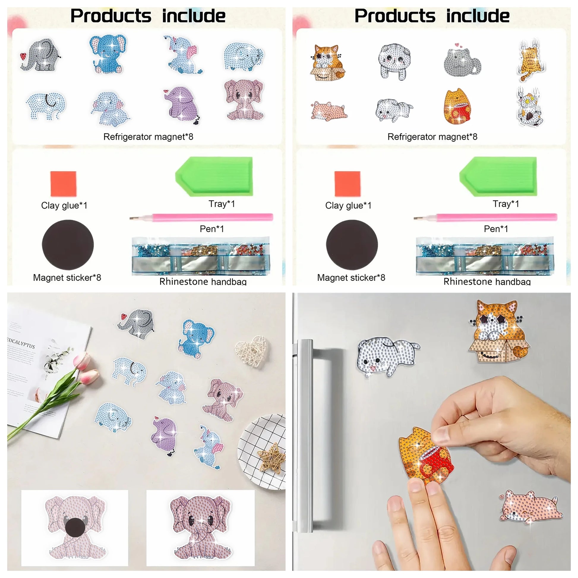 Diamond Painting Magneten - Set van 8 koelkastmagneten met speciale vorm steentjes