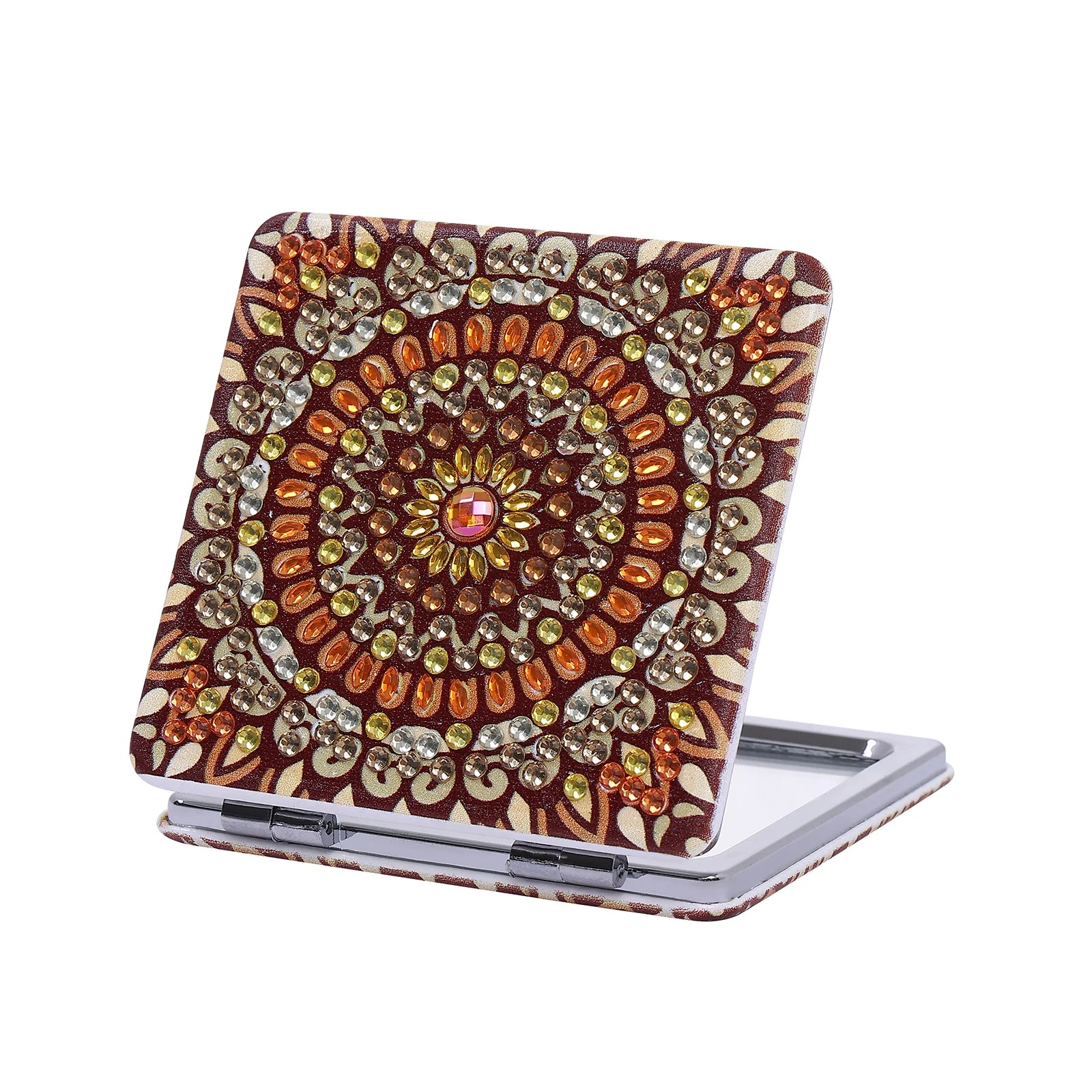Diamond Painting Make-up spiegel Mandala – Dubbelzijdige Opvouwbare Pocketspiegel – Inclusief Steentjes en Gereedschap