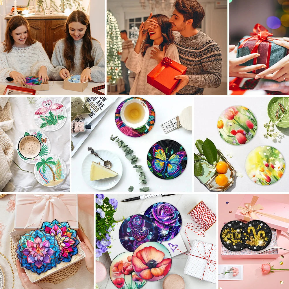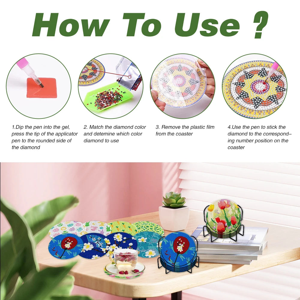 Geschikt voor iedereen die houdt van handwerk en decoratieve accessoires. Voeg een sprankelende touch toe aan uw interieur met deze veelzijdige Diamond Painting Onderzetters!