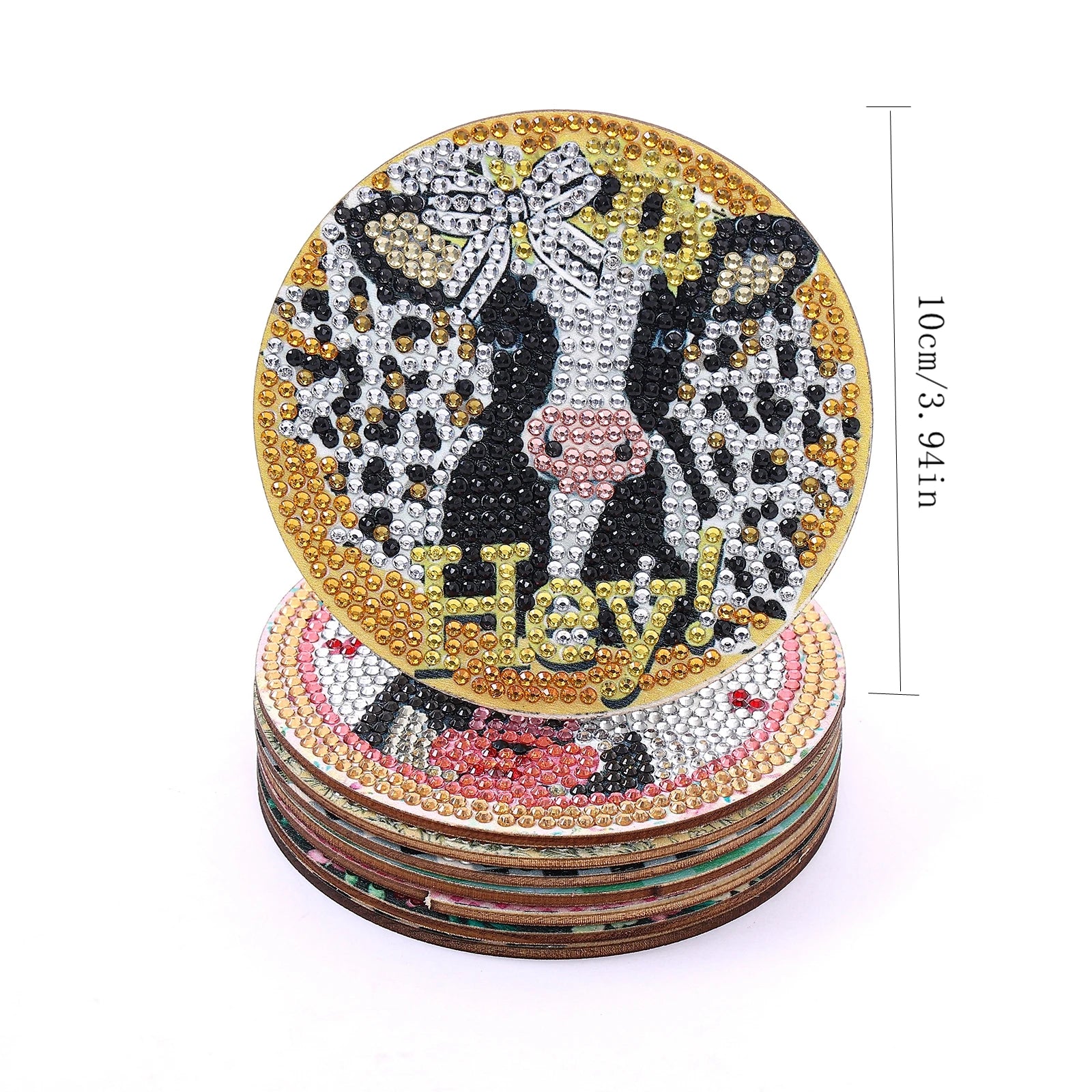 - Afmeting: Elk onderzettertje heeft een diameter van ca. 10 cm (4 inch). De exacte afmetingen kunnen variëren per ontwerp.