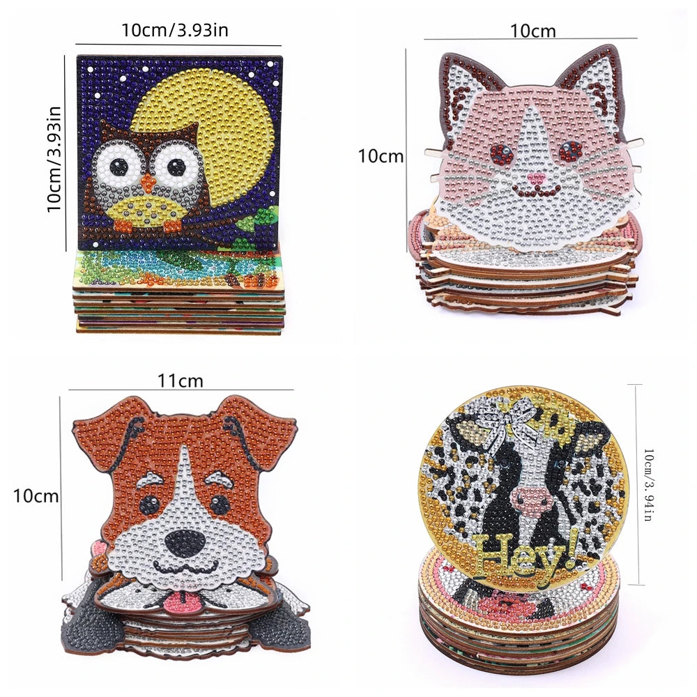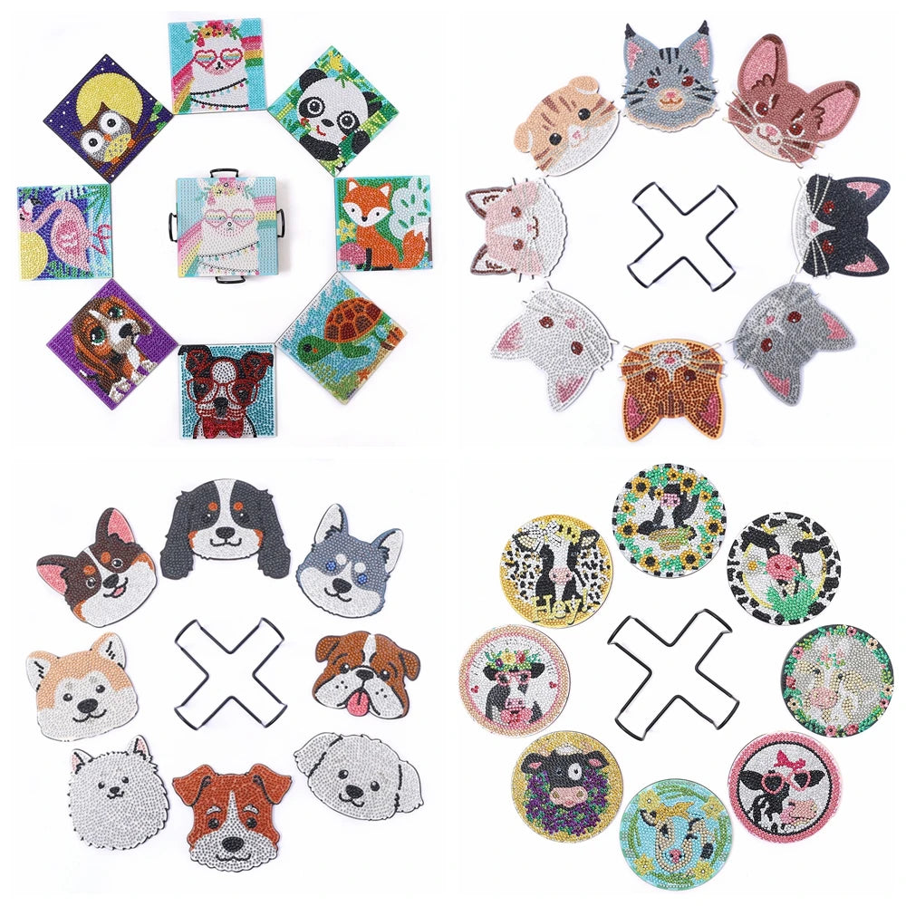Diamond Painting Onderzetters Koeien, honden of katten met Houder