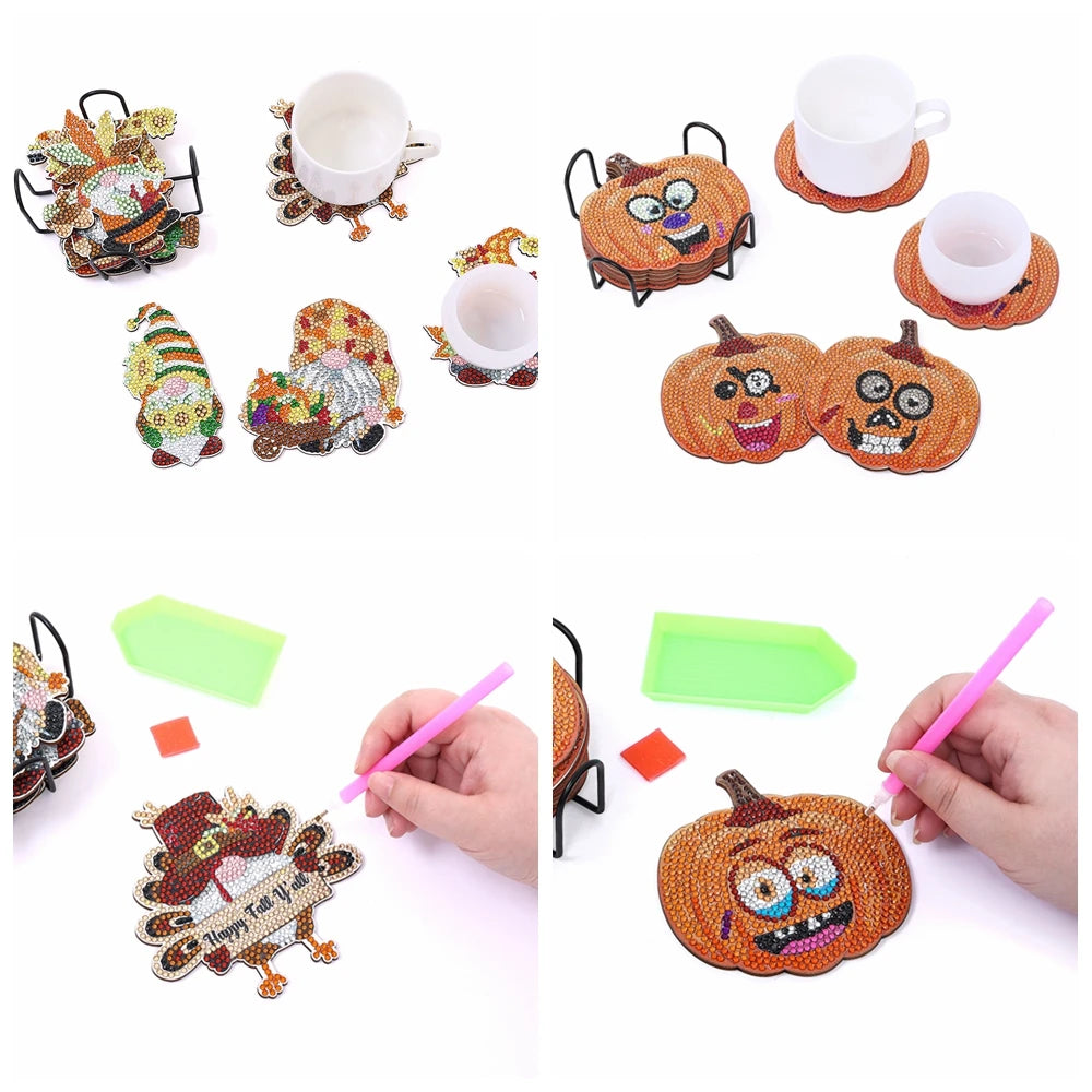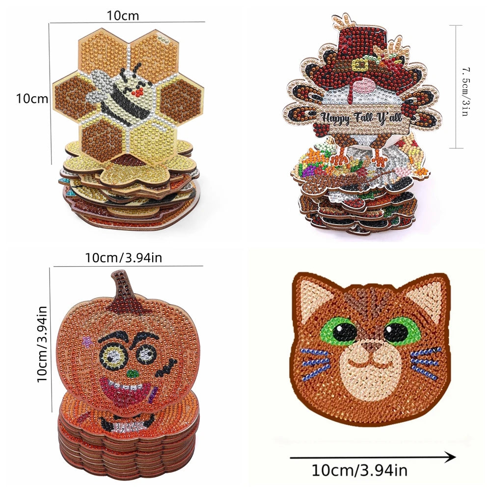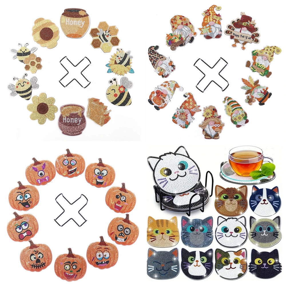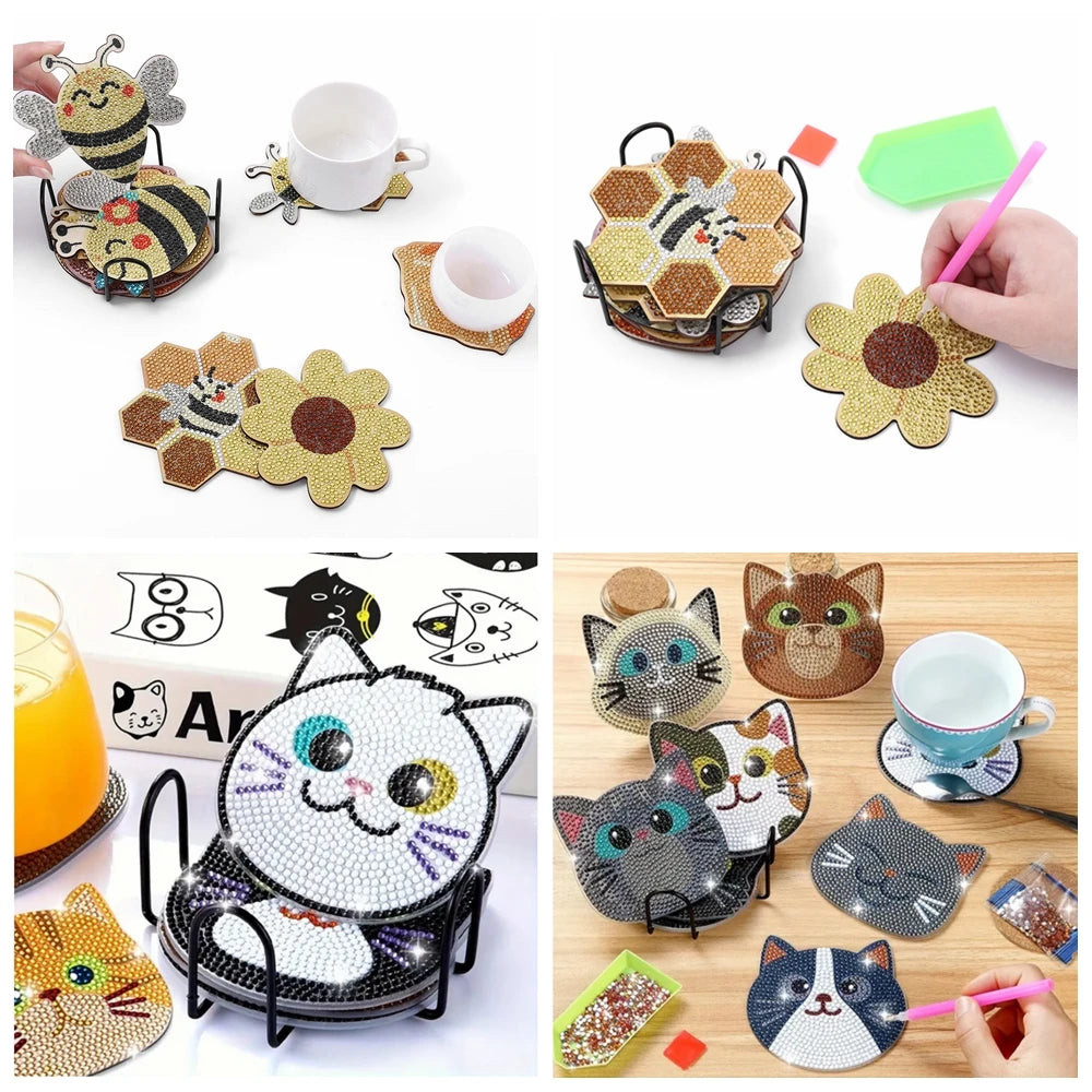 Diamond Painting Onderzetters met Houder - Katten, gnomes of bijtjes