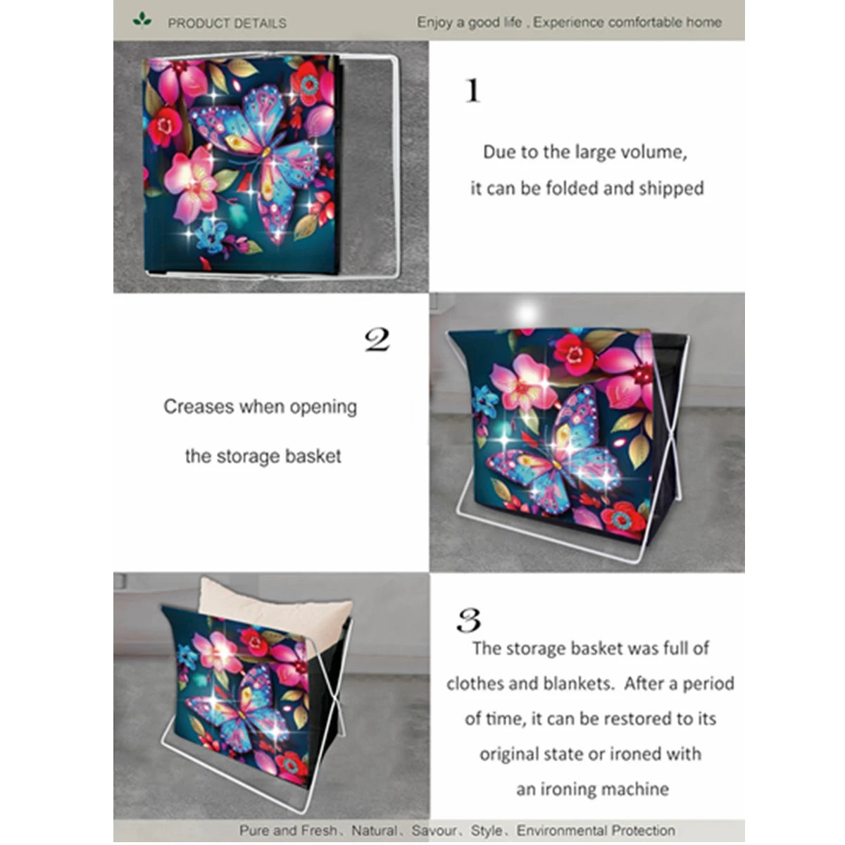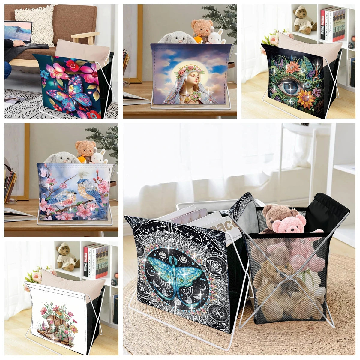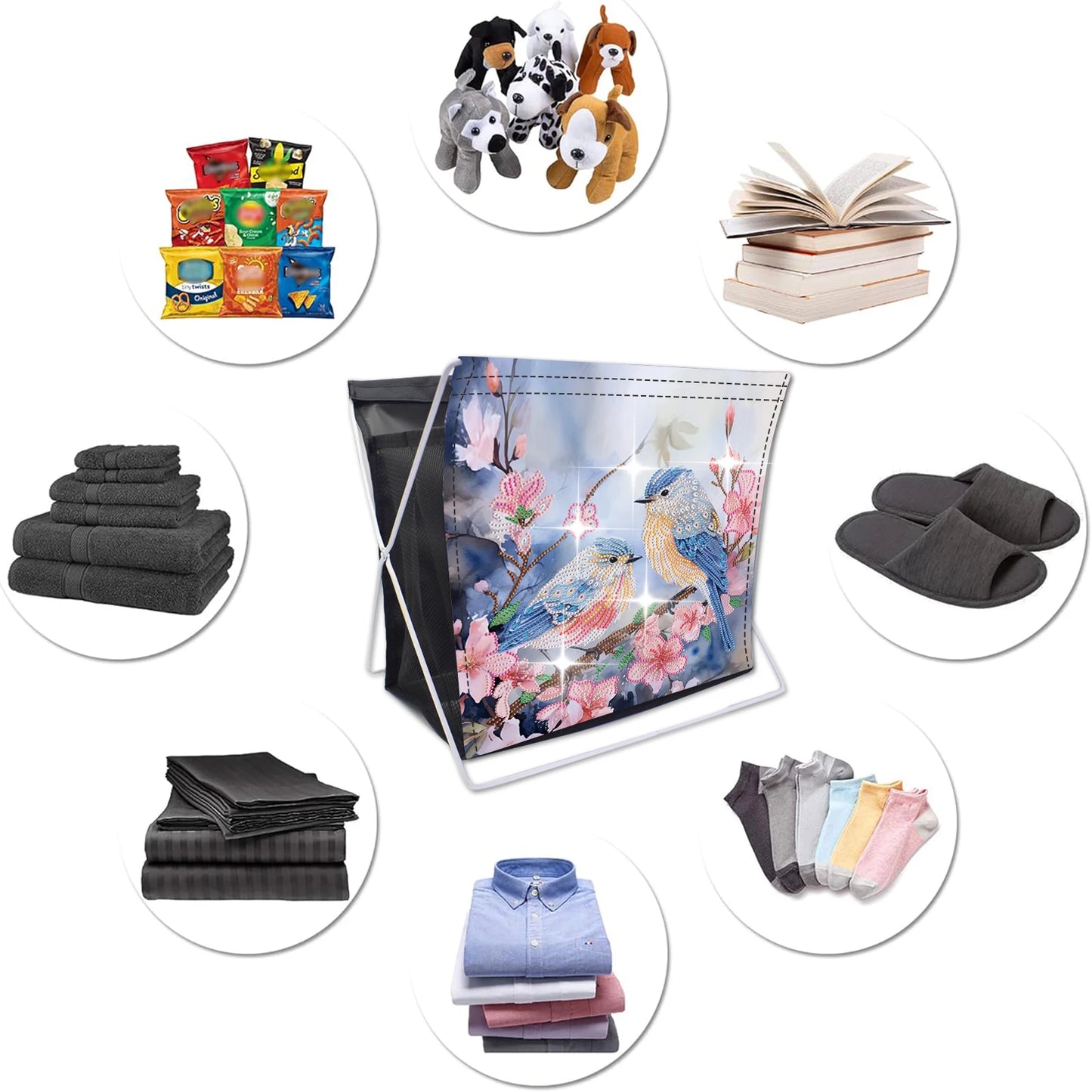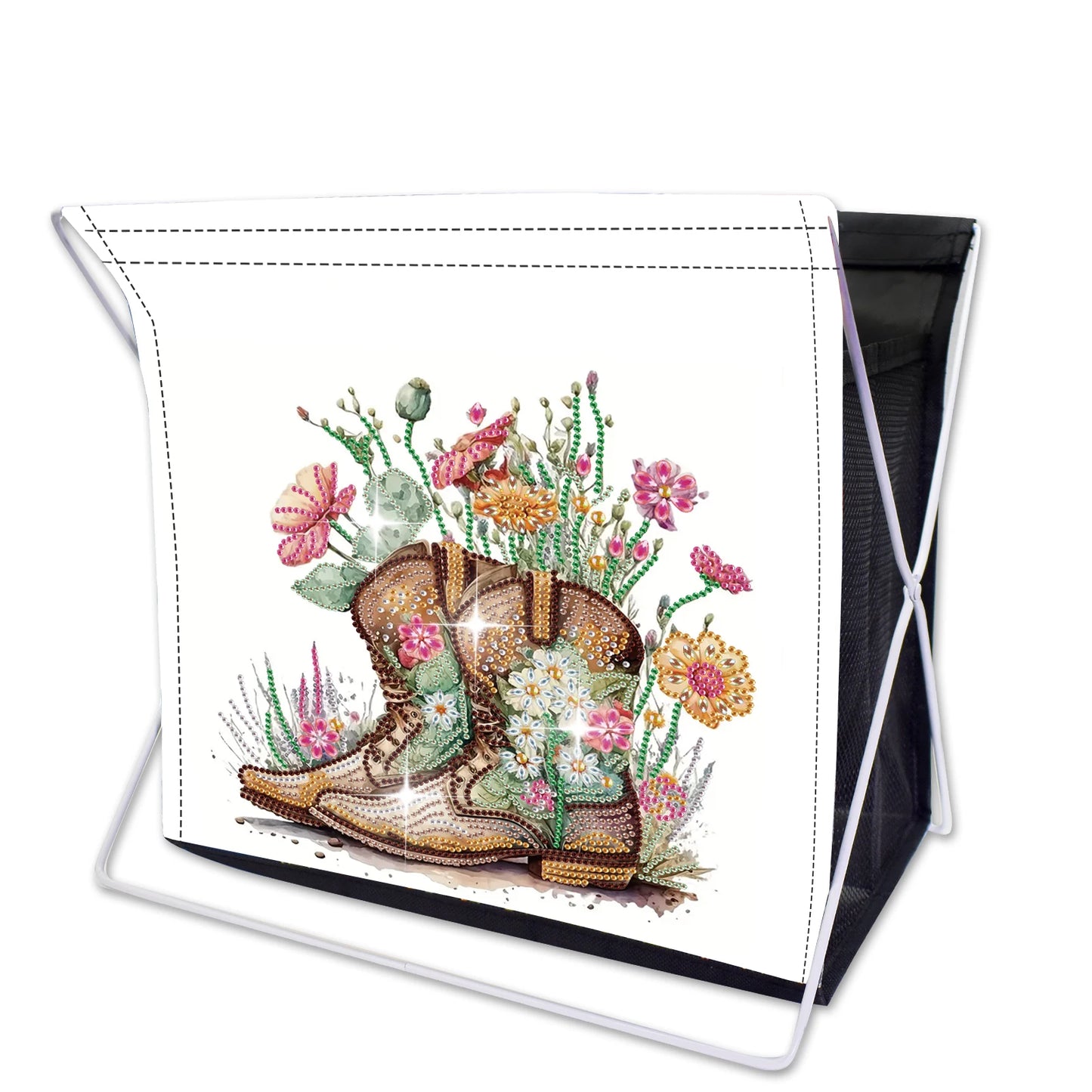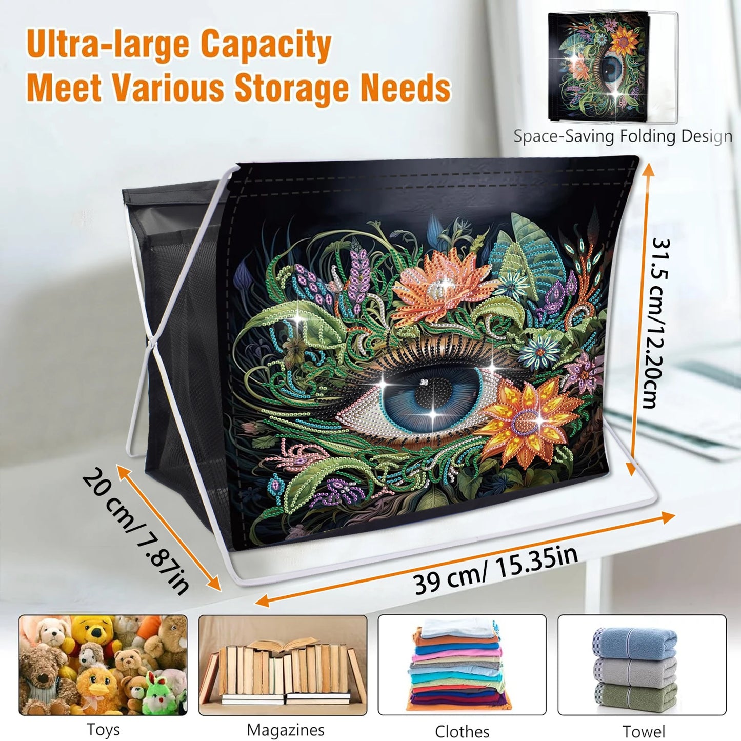 De opbergmand is voorzien van een eenzijdig Diamond Painting ontwerp met speciale, vormgegeven Diamond Painting steentjes. Dankzij de sterke ijzeren steunen blijft de mand stevig overeind, terwijl het duurzame canvas materiaal zorgt voor een stijlvolle en praktische uitstraling.