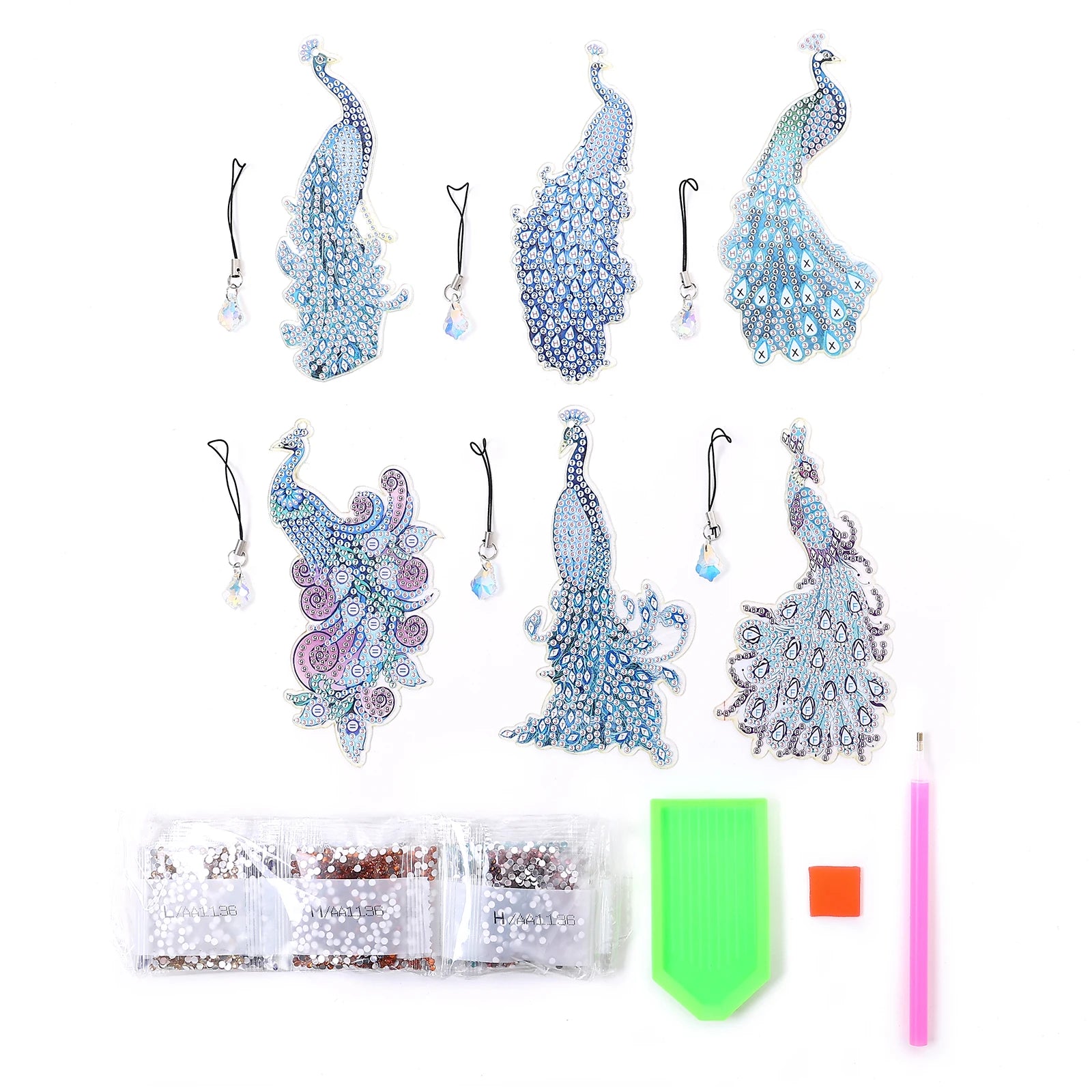 Diamond Painting Peacock Boekenleggers – Luxe Set van 6 Stuks