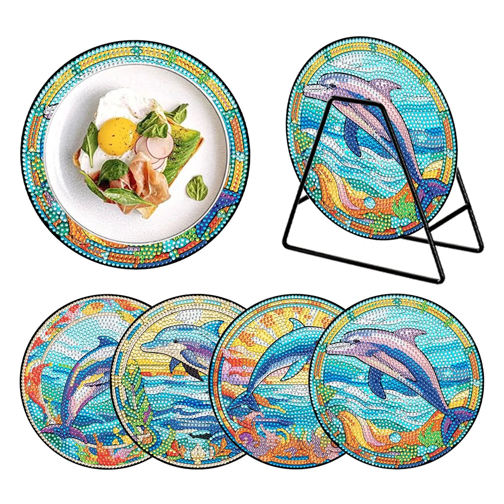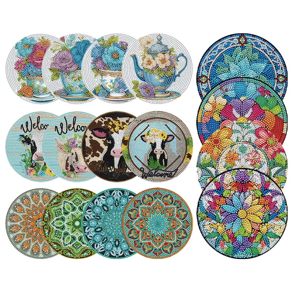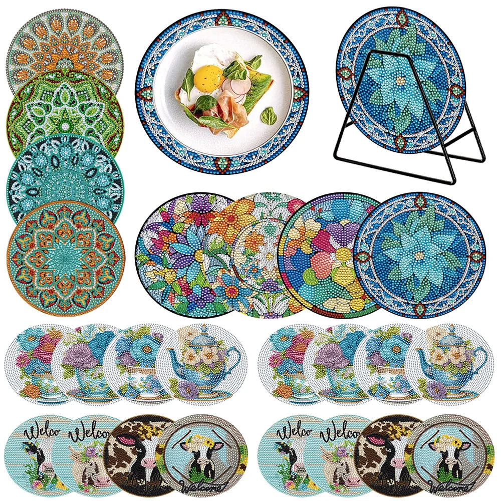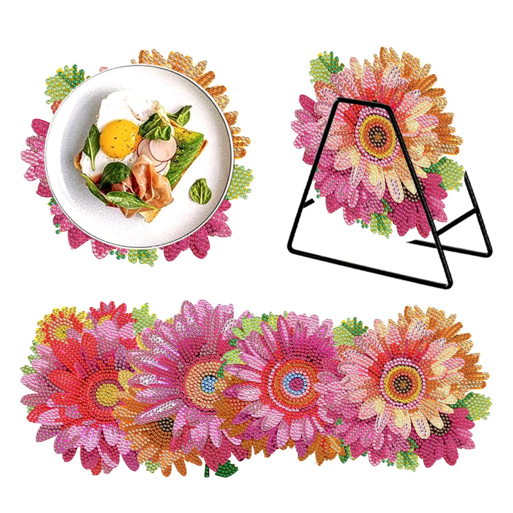 Diamond Painting Placemat met Bloemen en Koe Design – Set van 4