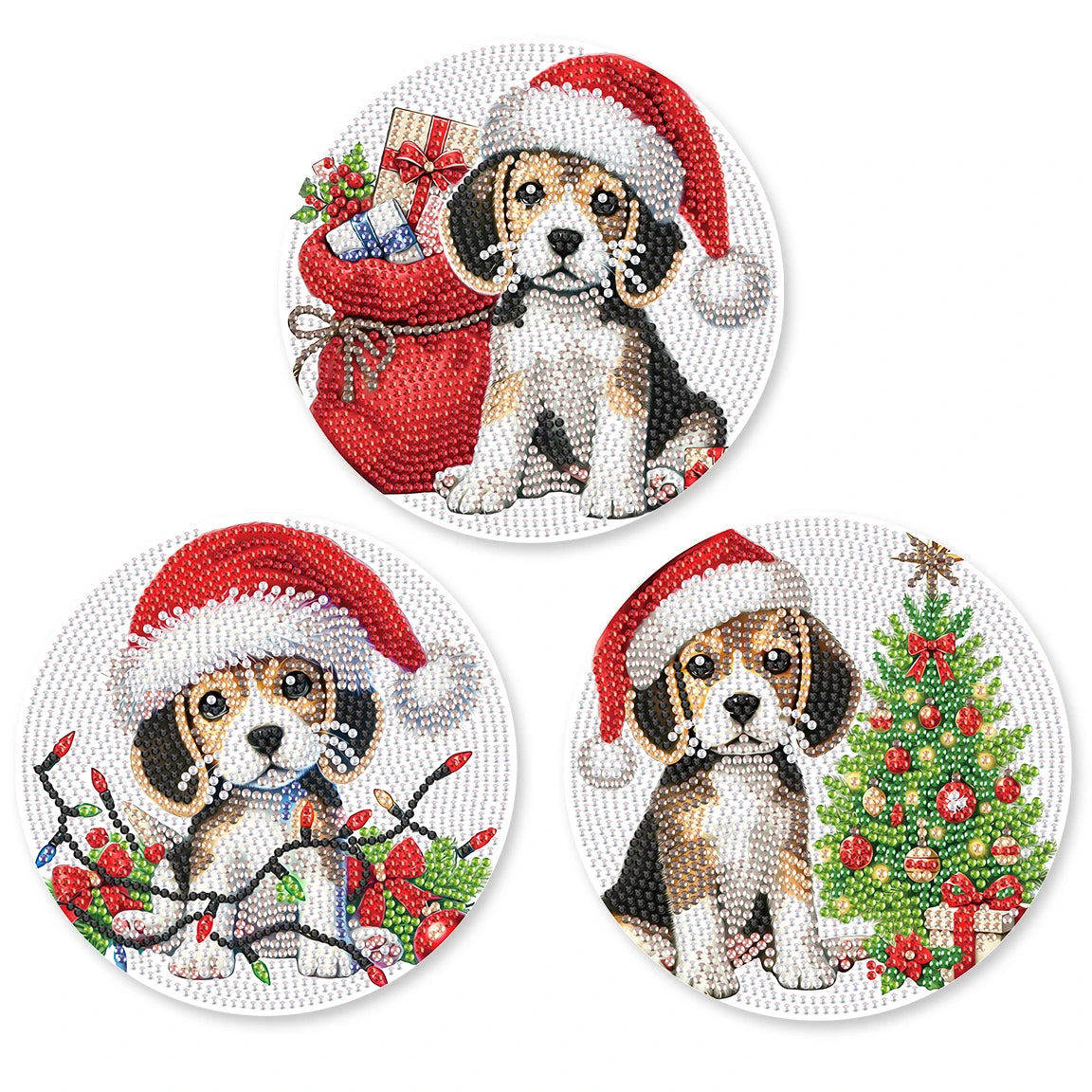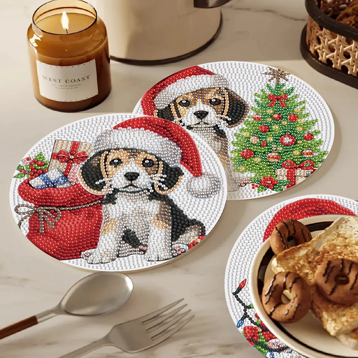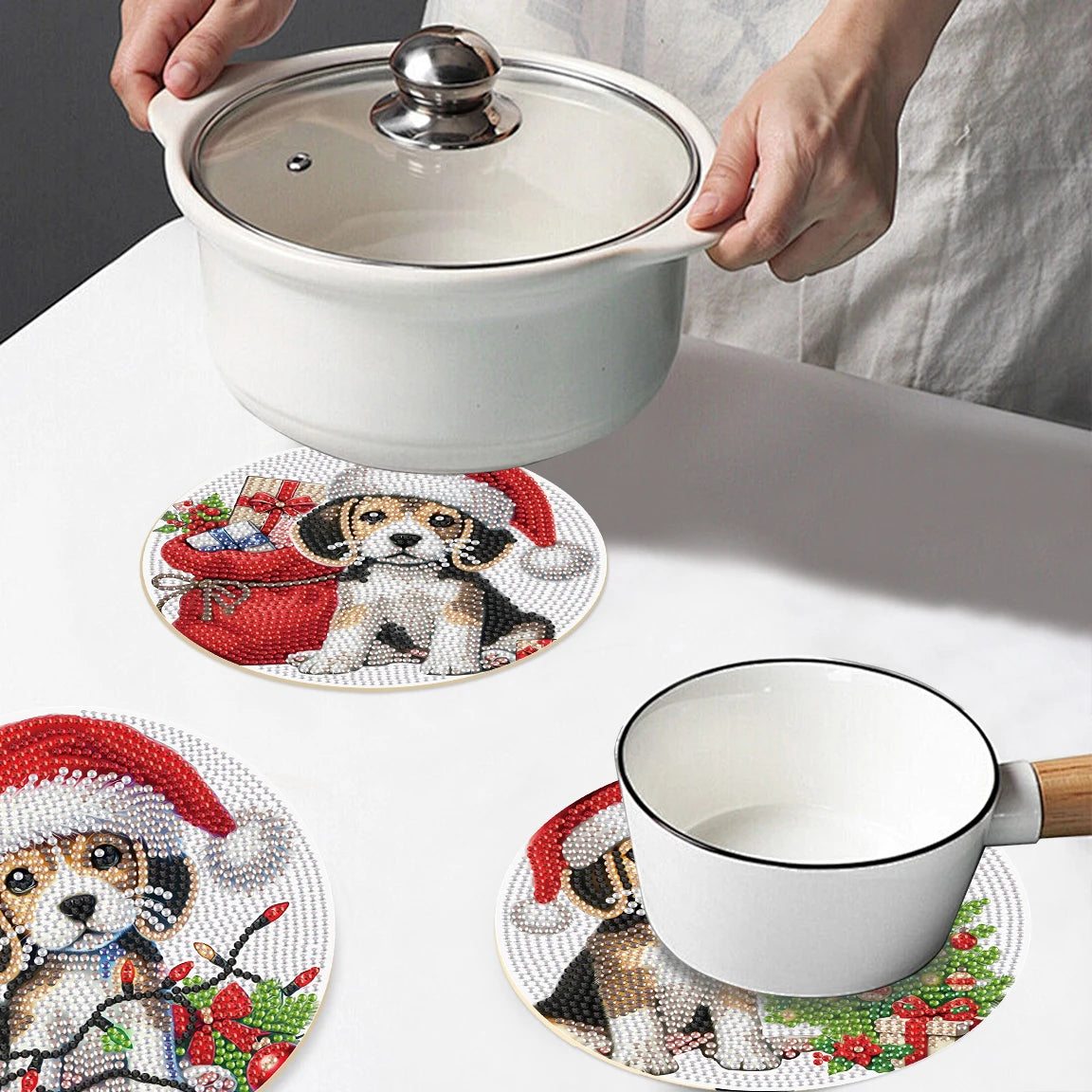 Breng kleur en creativiteit naar je eettafel met deze unieke set van 3 diamond painting placemats met een schattig puppyontwerp. Elke placemat is niet alleen een functioneel item voor dagelijks gebruik, maar ook een prachtig doe-het-zelf project waarmee je een persoonlijk tintje aan je interieur geeft. De ronde placemats zijn eenvoudig te versieren met glinsterende steentjes en zorgen voor een speelse en stijlvolle uitstraling in je keuken of eetkamer. Ideaal als origineel cadeau of om zelf van te genieten – deze handgemaakte tafeldecoratie maakt elk moment aan tafel extra bijzonder.