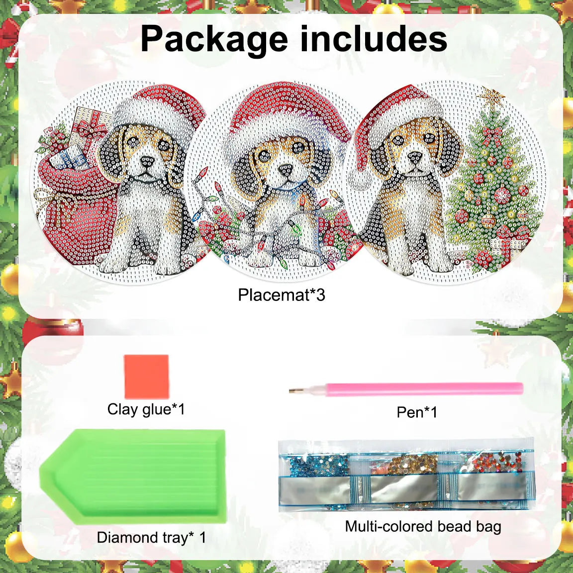Diamond Painting Placemat met Schattige Puppy – Set van 3 voor Tafeldecoratie