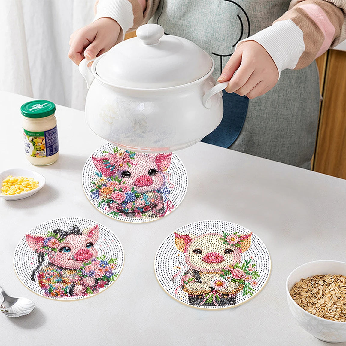 Diamond Painting Placemat set – Varkentje design voor creatieve tafeldecoratie