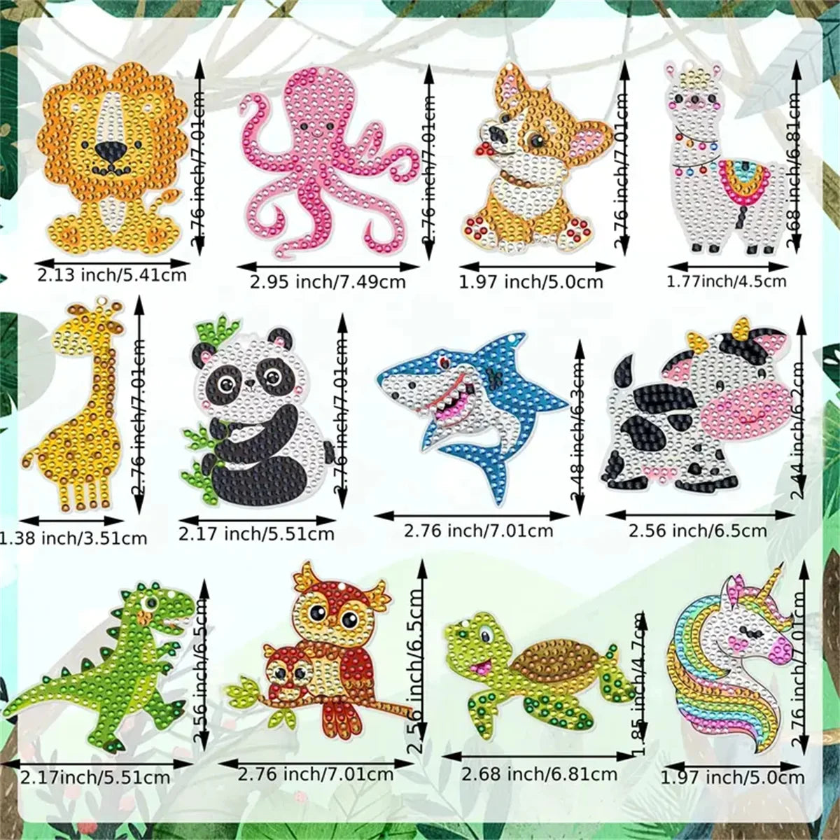 Diamond Painting Sleutelhanger set - Dieren Mix - 12 stuks