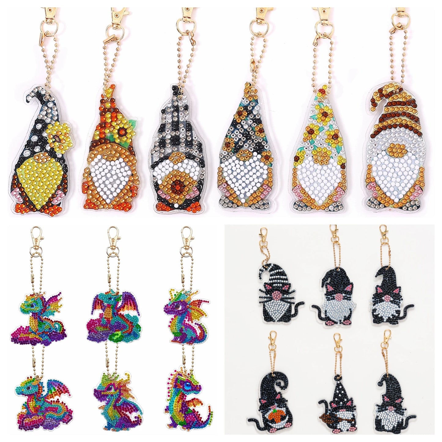 Diamond Painting Sleutelhanger set - Kabouters - Dubbelzijdig - 6 stuks