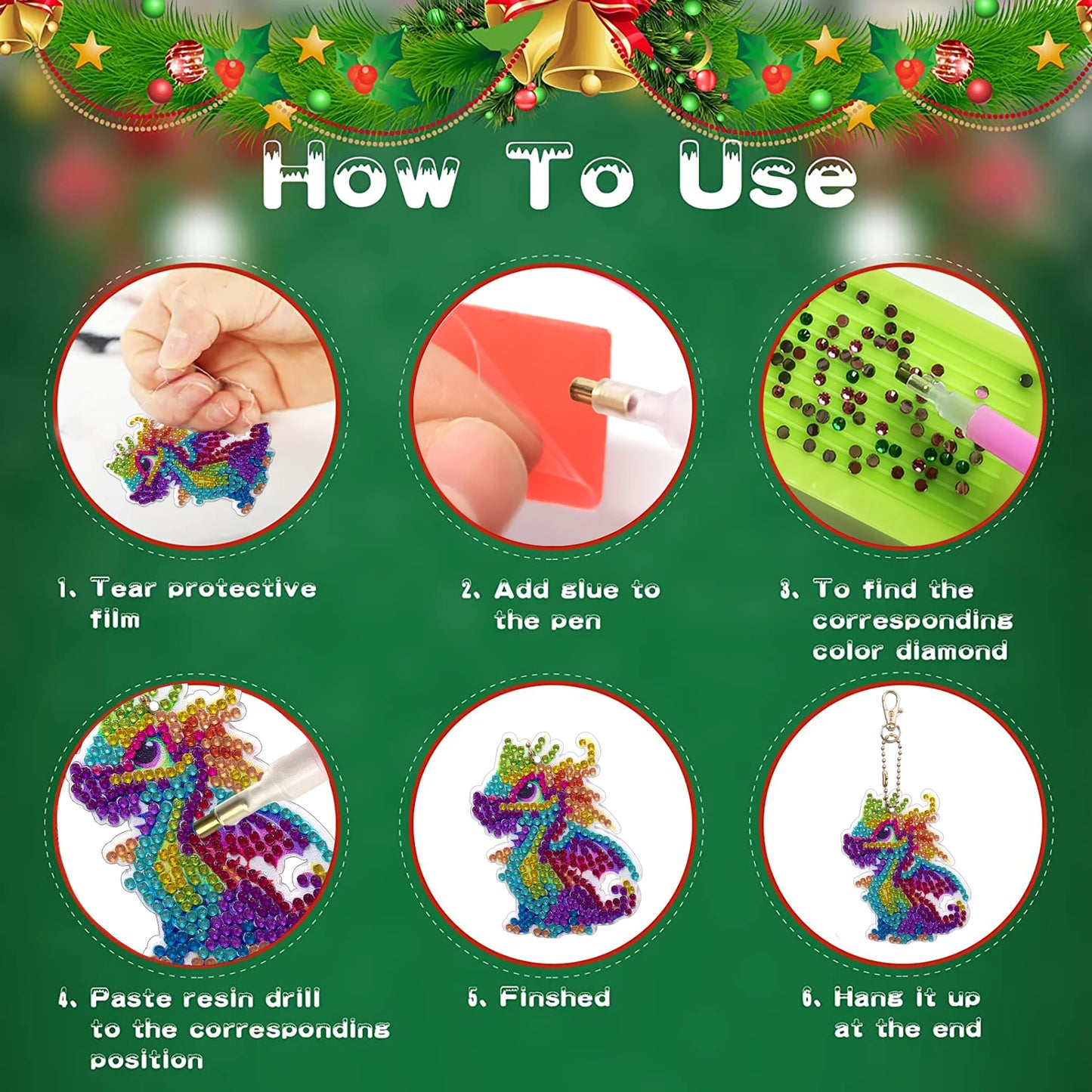 Elke sleutelhanger is gemaakt van stevig acryl en wordt geleverd met alle benodigde accessoires, zoals diamond painting steentjes, wax, een pen en een sorteerbakje. De krachtige groene olie-gebaseerde lijm zorgt ervoor dat de steentjes goed blijven zitten.