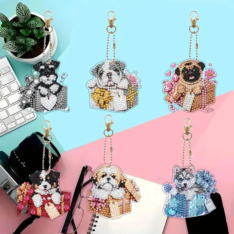 Diamond Painting Sleutelhangers Honde – 6 stuks creatieve mozaïek set