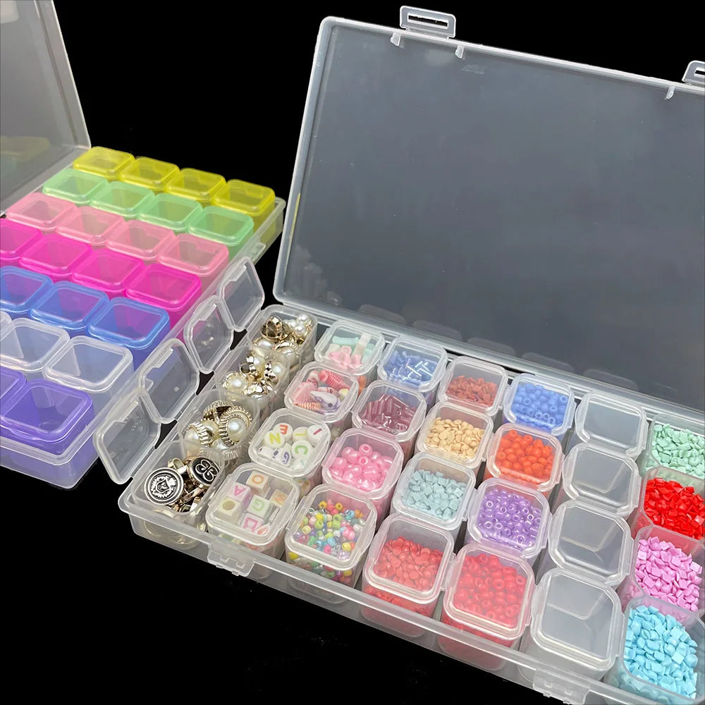 Deze Diamond Painting Sorteerdoos met tools is de ideale opbergoplossing voor jouw Diamond Painting steentjes en gereedschap. Met 28 vakjes, elk voorzien van een eigen deksel, houd je jouw steentjes en accessoires netjes georganiseerd. De compacte en duurzame opbergdoos is perfect voor dagelijks gebruik en ook geschikt om kleine sieraden of kralen in te bewaren.