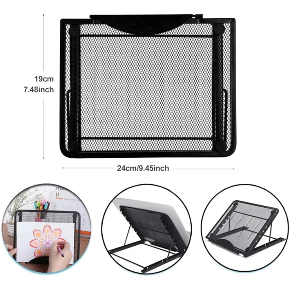 De standaard is verstelbaar in verschillende hoeken, zodat je altijd de perfecte werkhoogte kunt instellen. De antislipvoetjes zorgen ervoor dat je lichtpad of werkoppervlak stevig op zijn plaats blijft. De geventileerde metalen basis helpt warmte af te voeren, wat het gebruik van apparaten zoals een lichtpad, laptop of tablet comfortabeler maakt.
