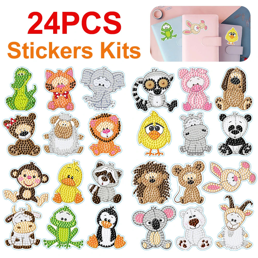 Diamond Painting Sticker set - 24-delige dierenstickers knutselset