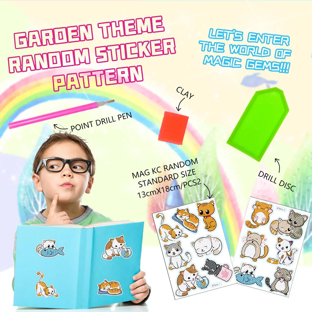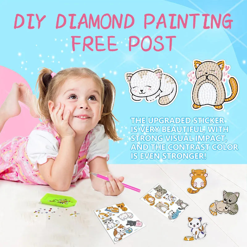 Laat kinderen hun creativiteit ontdekken met deze Diamond Painting Sticker set! Deze leuke en kleurrijke set bevat schattige kattenstickers die met Diamond Painting steentjes versierd kunnen worden. Kinderen kunnen eenvoudig de steentjes op de juiste plek plakken met behulp van het bijgeleverde schudbakje en pennetje.