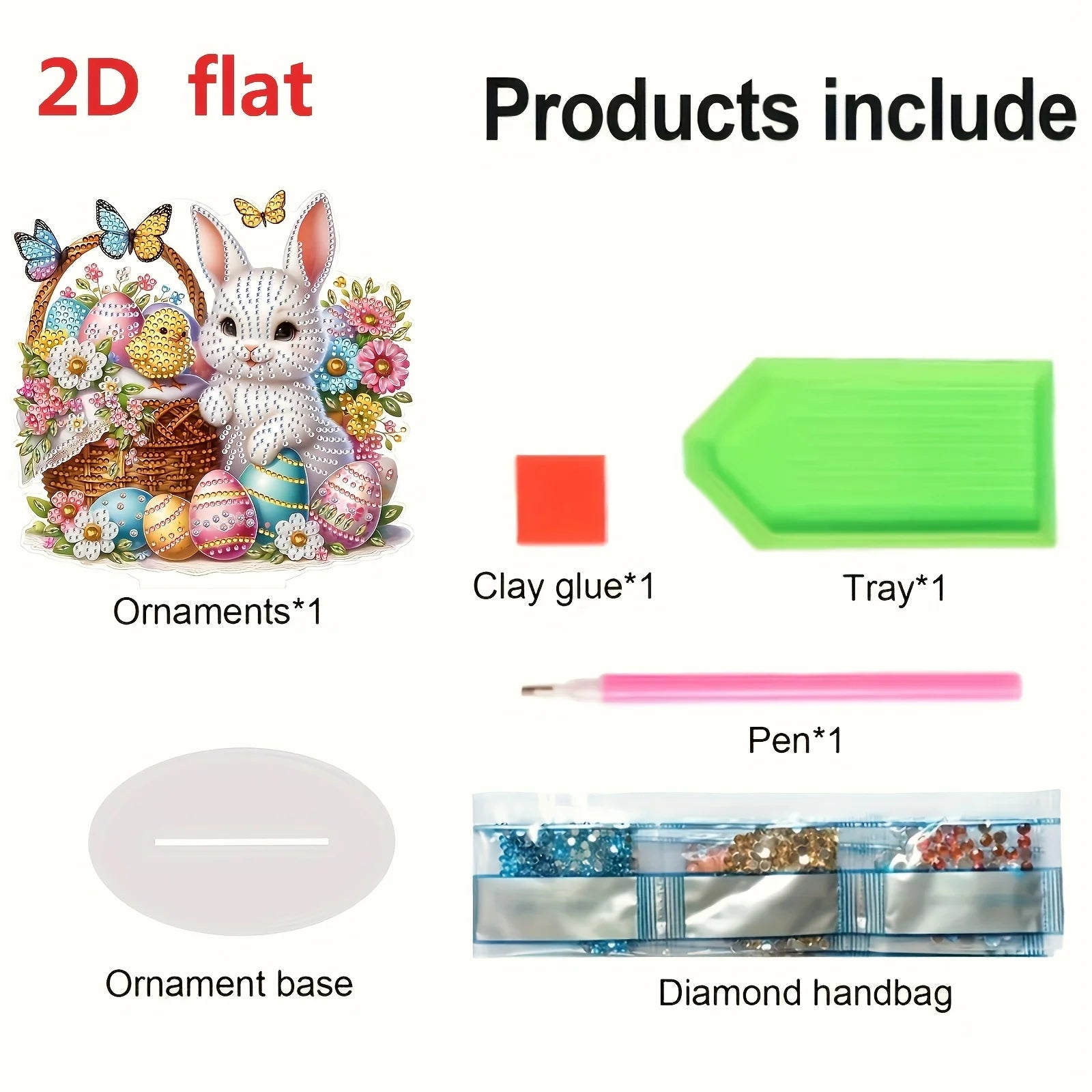 Diamond Painting Tafelornament Paashaas met Mand en Eieren