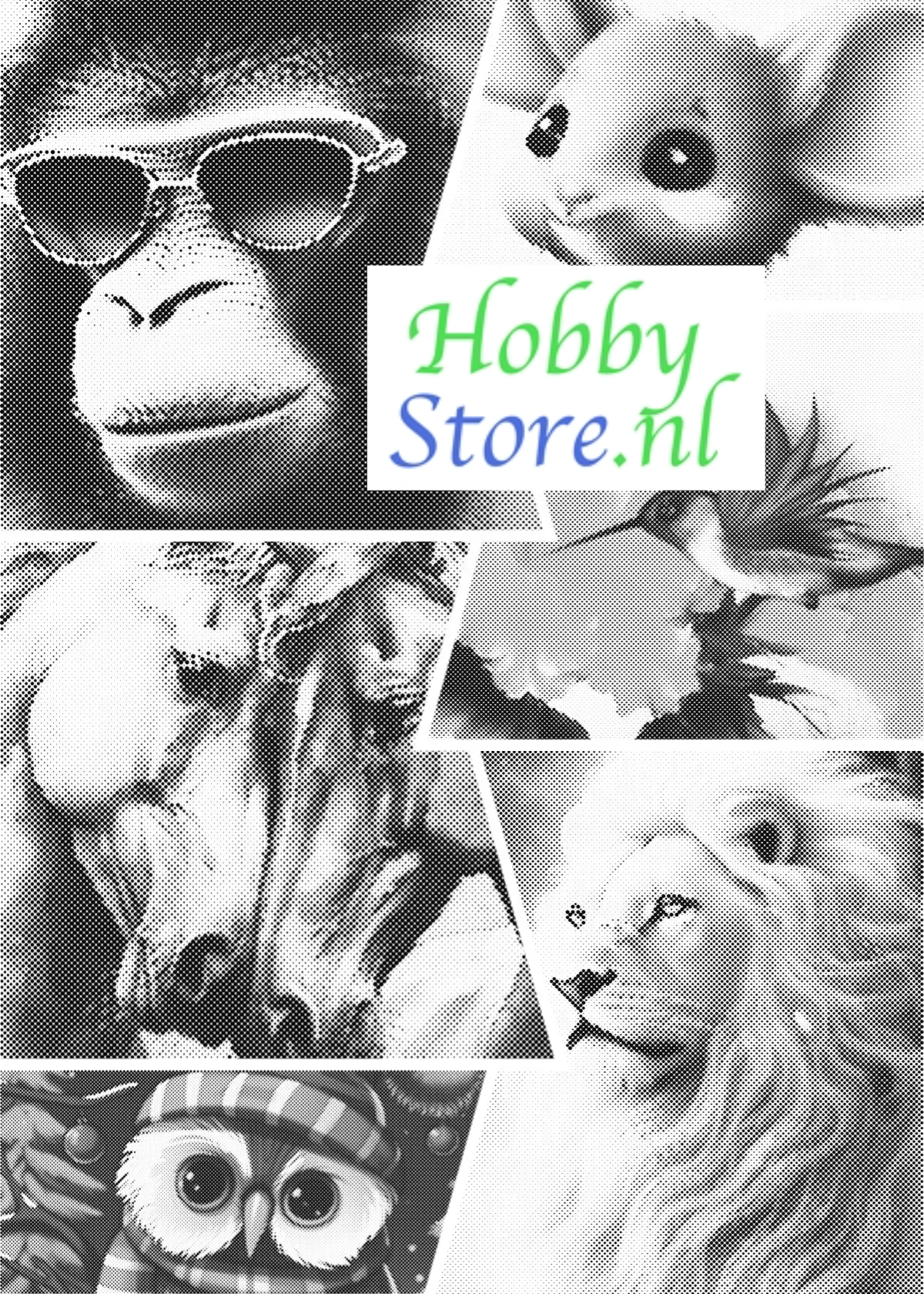 Ontdek de rustgevende en creatieve wereld van DOT Painting! Dit prachtige voorbedrukte canvas toont indrukwekkende dierafbeeldingen zoals een aap, vogel, kat, paard, pauw en meer. Door gebruik te maken van zwarte stiften en stippen in verschillende formaten in te kleuren, ontstaat een verbluffend kunstwerk met een uniek en gedetailleerd effect.