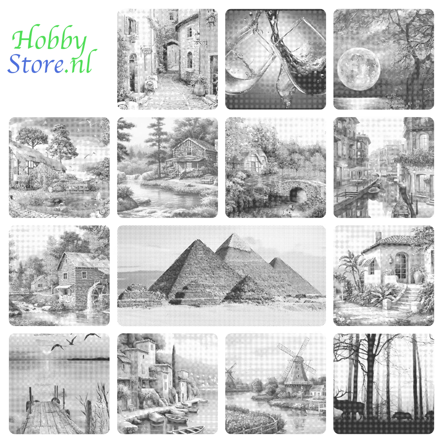 Breng landschappen tot leven met DOT Painting! Deze unieke kunstvorm laat je ontspannen terwijl je prachtige voorbedrukte ontwerpen inkleurt met zwarte stiften. De stippen variëren in formaat, wat zorgt voor een verbluffend eindresultaat. Het canvas is verkrijgbaar in twee formaten: 40x50 cm en 60x75 cm, perfect om jouw creativiteit de ruimte te geven. Ideaal voor zowel beginners als gevorderde kunstenaars. Creëer jouw eigen meesterwerk en geniet van het proces!