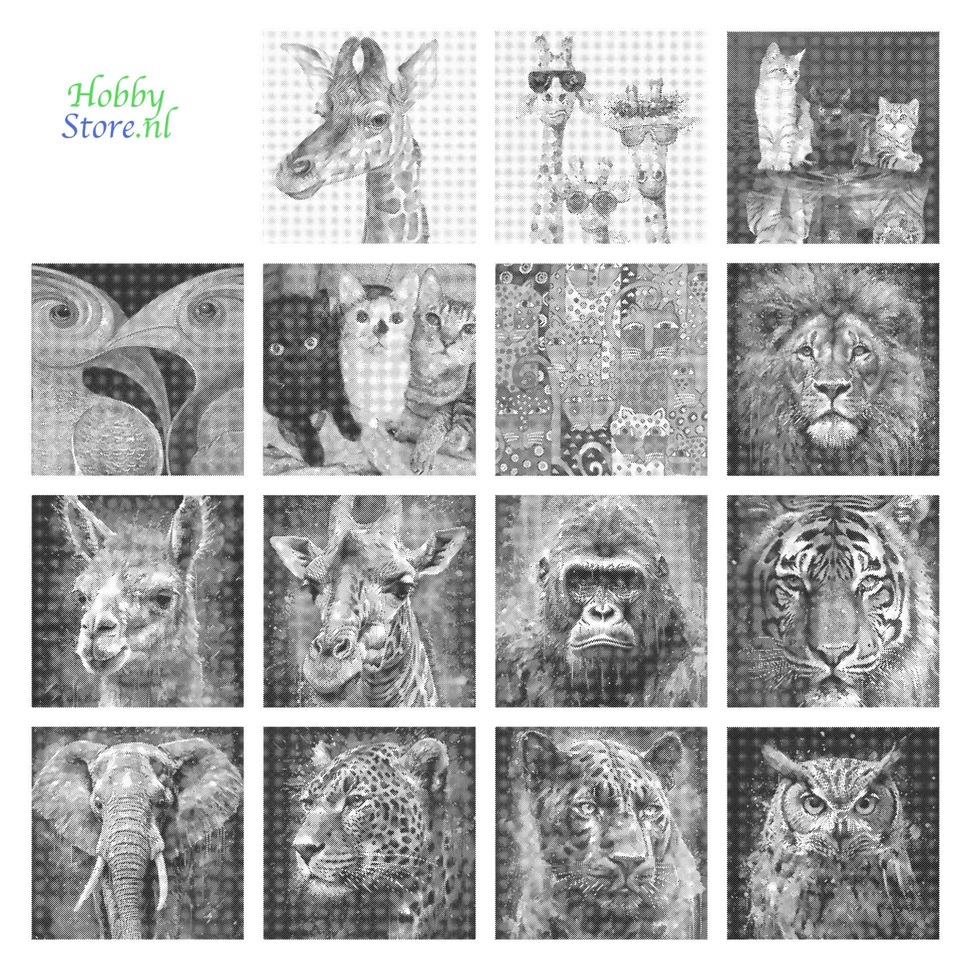 Kies jouw favoriete dierenontwerp uit een breed scala aan geliefde dieren: giraf, kat, leeuw, tijger, olifant, lama, uil, luipaard en aap. Elk ontwerp biedt een unieke en gedetailleerde basis om een prachtig eindresultaat te realiseren.