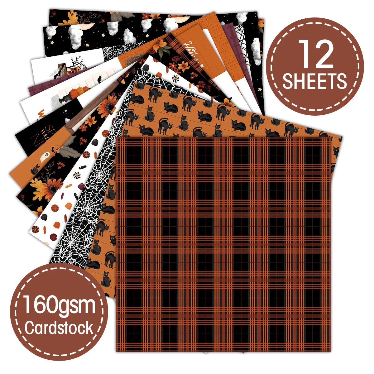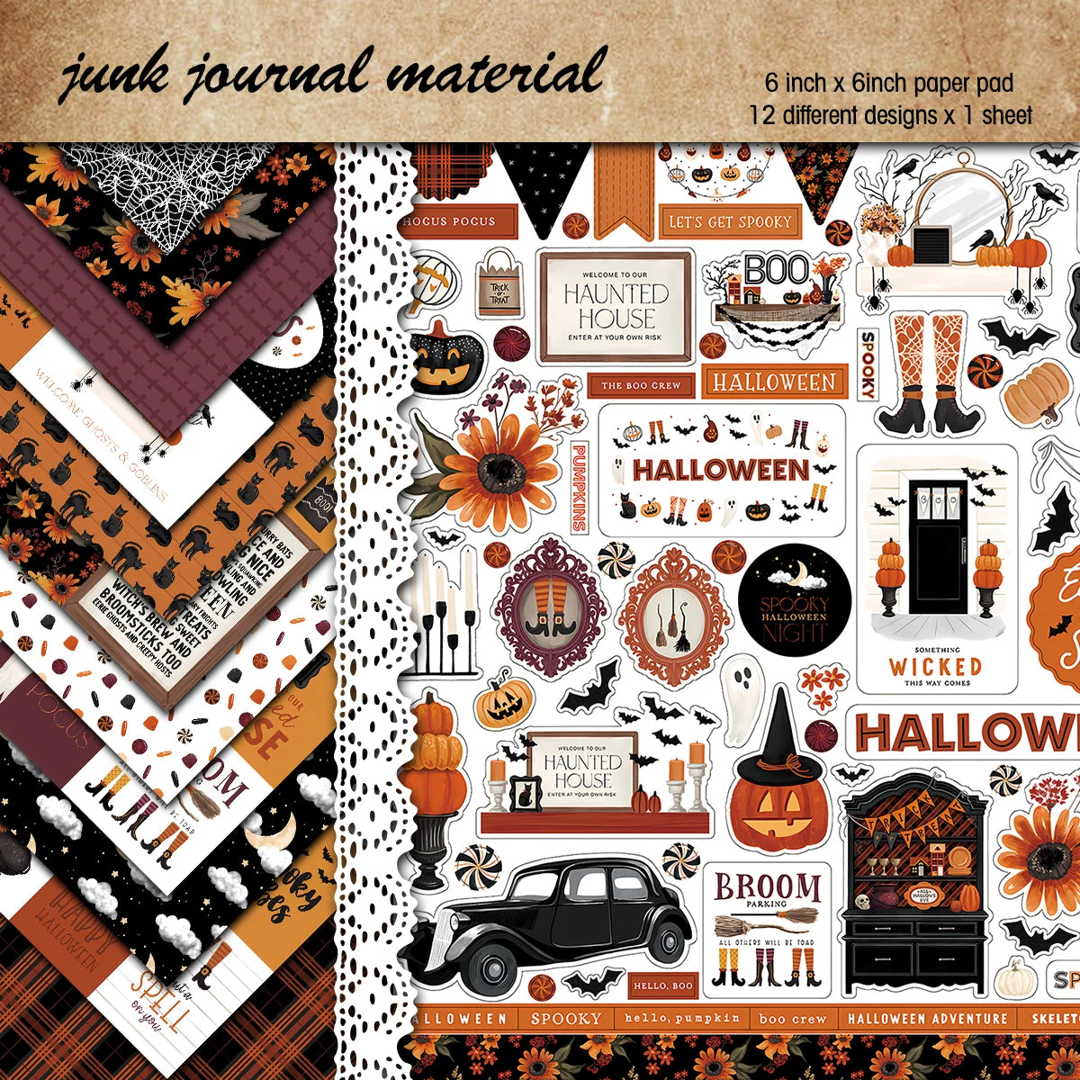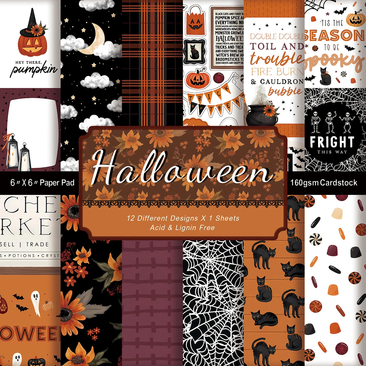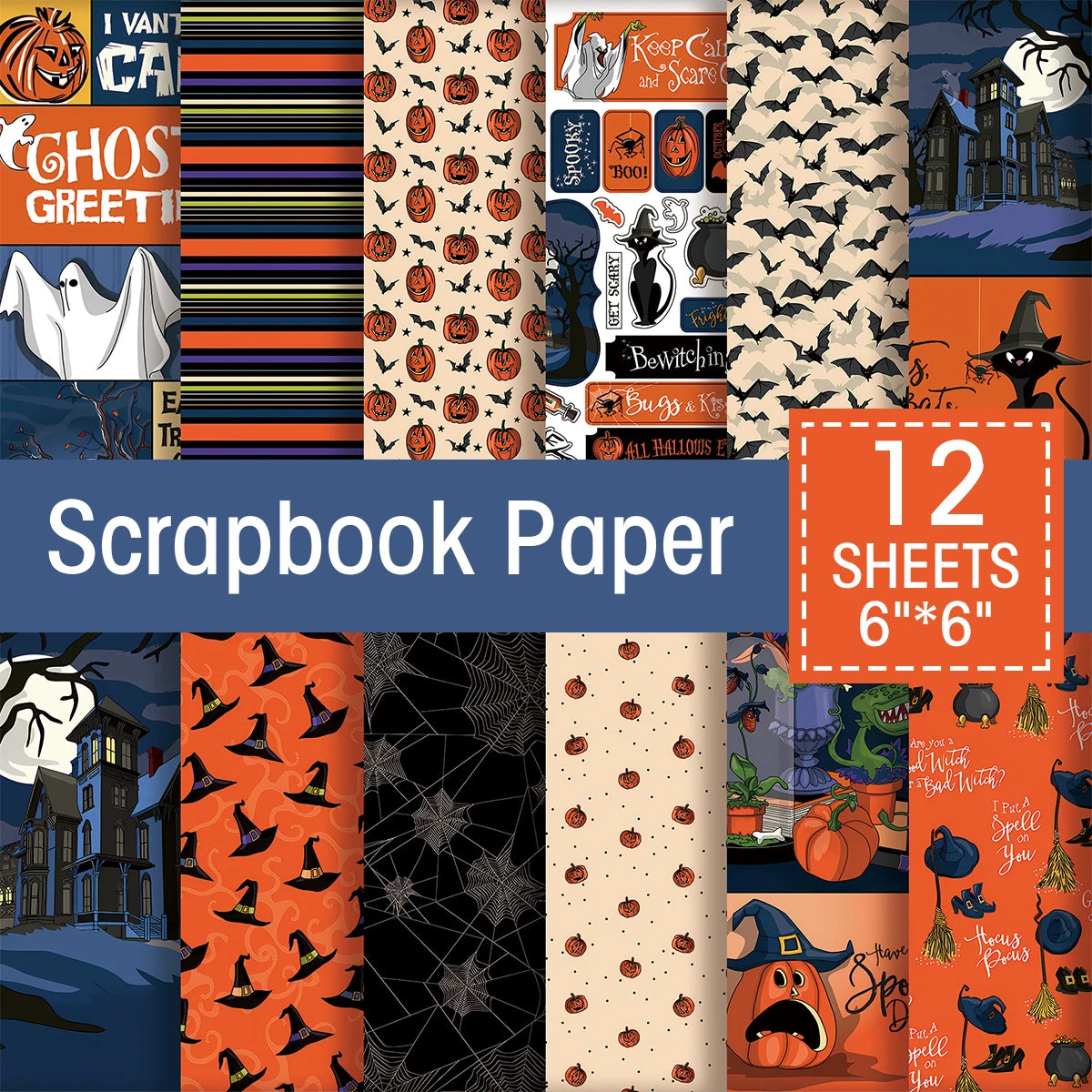 Halloween Scrapbook Papierblok - 12 Vellen, 15x15 cm, Enkelzijdig