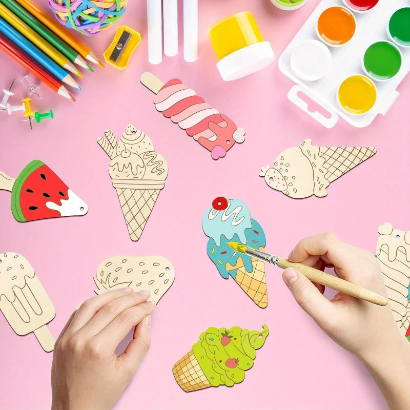 Houten figuren om zelf te kleuren/schilderen ijsjes van hout