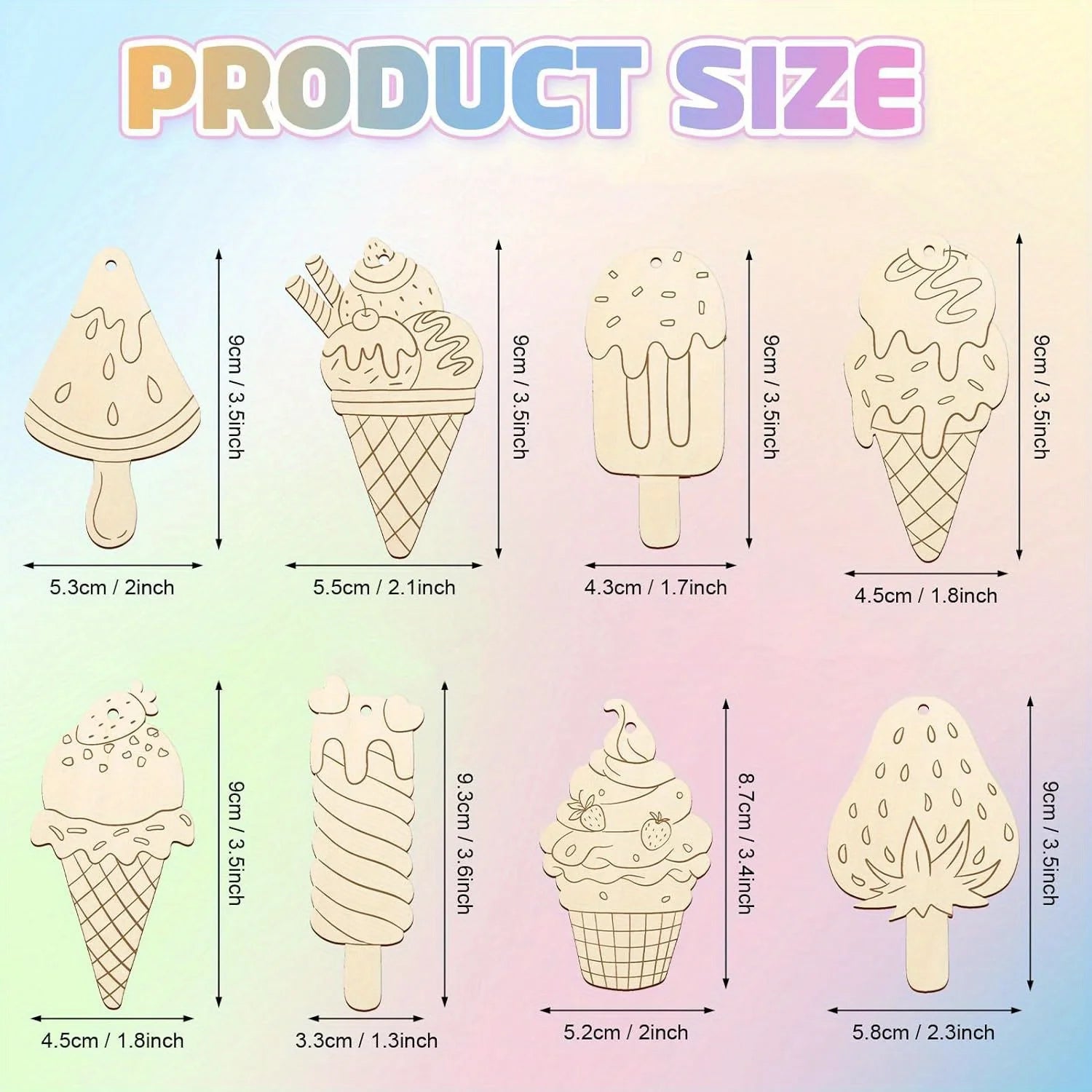 Elke set bestaat uit meerdere houten ornamenten met een gladde afwerking en afgeronde randen. Het gebruikte hout voelt stevig aan en is prettig om vast te houden. Dit zorgt voor een veilige en duurzame basis voor creatief gebruik. De ijsjesvormen spreken tot de verbeelding en nodigen uit om kleuren te combineren, patronen te maken en steeds nieuwe ideeën uit te proberen.
