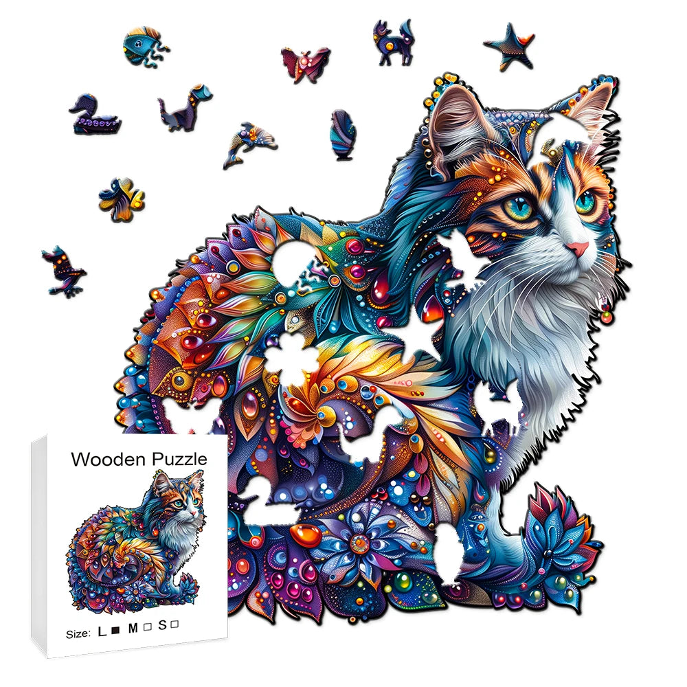 Ontdek de magie van onze Houten figuren puzzel! Deze kleurrijke puzzel is perfect voor zowel volwassenen als kinderen. Geniet van een leuke en uitdagende ervaring terwijl je de puzzelstukjes in elkaar legt. Een selectie van de puzzelstukjes heeft een speciale vorm, zoals dieren (kat, beer, olifant, schildpad en meer), bloemen of abstracte figuren, waardoor elke puzzel uniek en boeiend is.