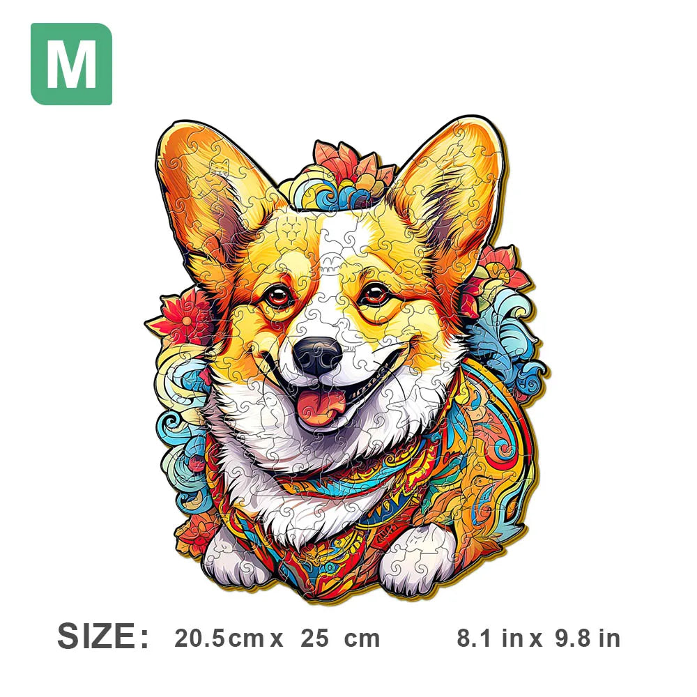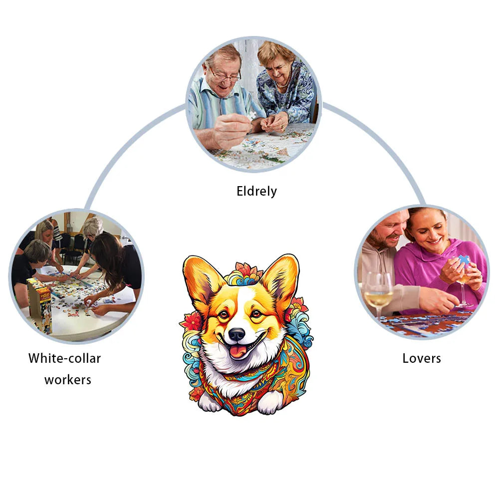 Houten figuren puzzel Kleurrijke Hond – Luxe Cadeaubox