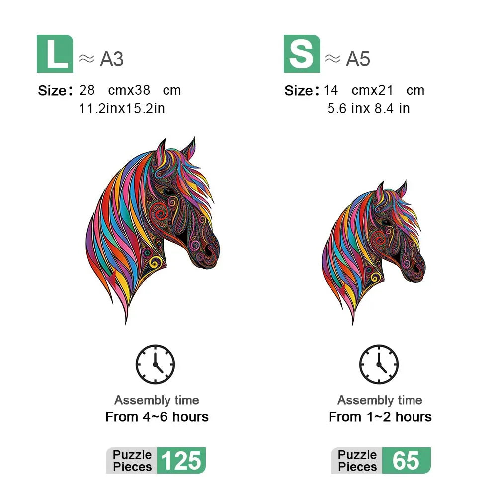 Het gebruik van stevig hout geeft de puzzel een natuurlijke uitstraling en maakt het product duurzaam in gebruik. De levendige kleuren en gedetailleerde figuren brengen de magie van het paard tot leven. Ideaal om samen met familie te maken of om alleen even tot rust te komen.