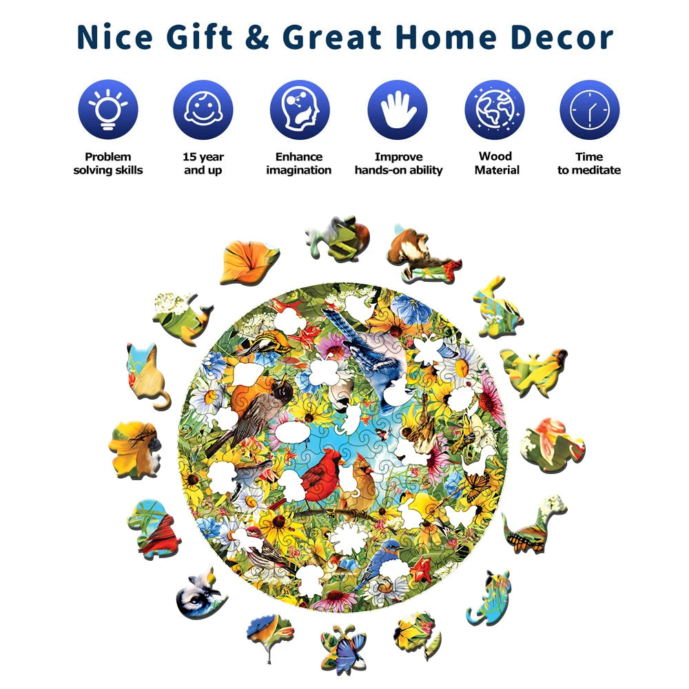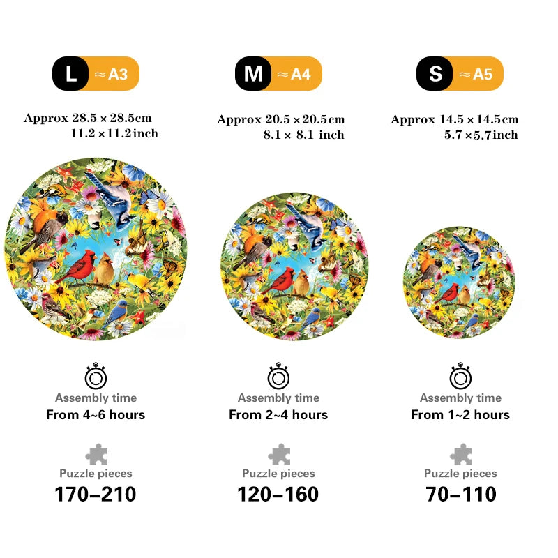 De Houten figuren puzzel - Vogels biedt een unieke puzzelervaring voor jong en oud. Kies uit diverse maten en ontdek de bijzondere puzzelstukjes die zijn ontworpen in speciale vormen zoals dieren, bloemen en abstracte figuren. Deze prachtige puzzel met een thema van vogels is niet alleen een leuk doe-het-zelf spel voor het hele gezin, maar ook een geweldige manier om stress te verlichten en te ontspannen. Wanneer voltooid, vormt de puzzel een decoratief kunstwerk dat perfect past in uw huis. Ideaal als cadeau of om zelf van te genieten!