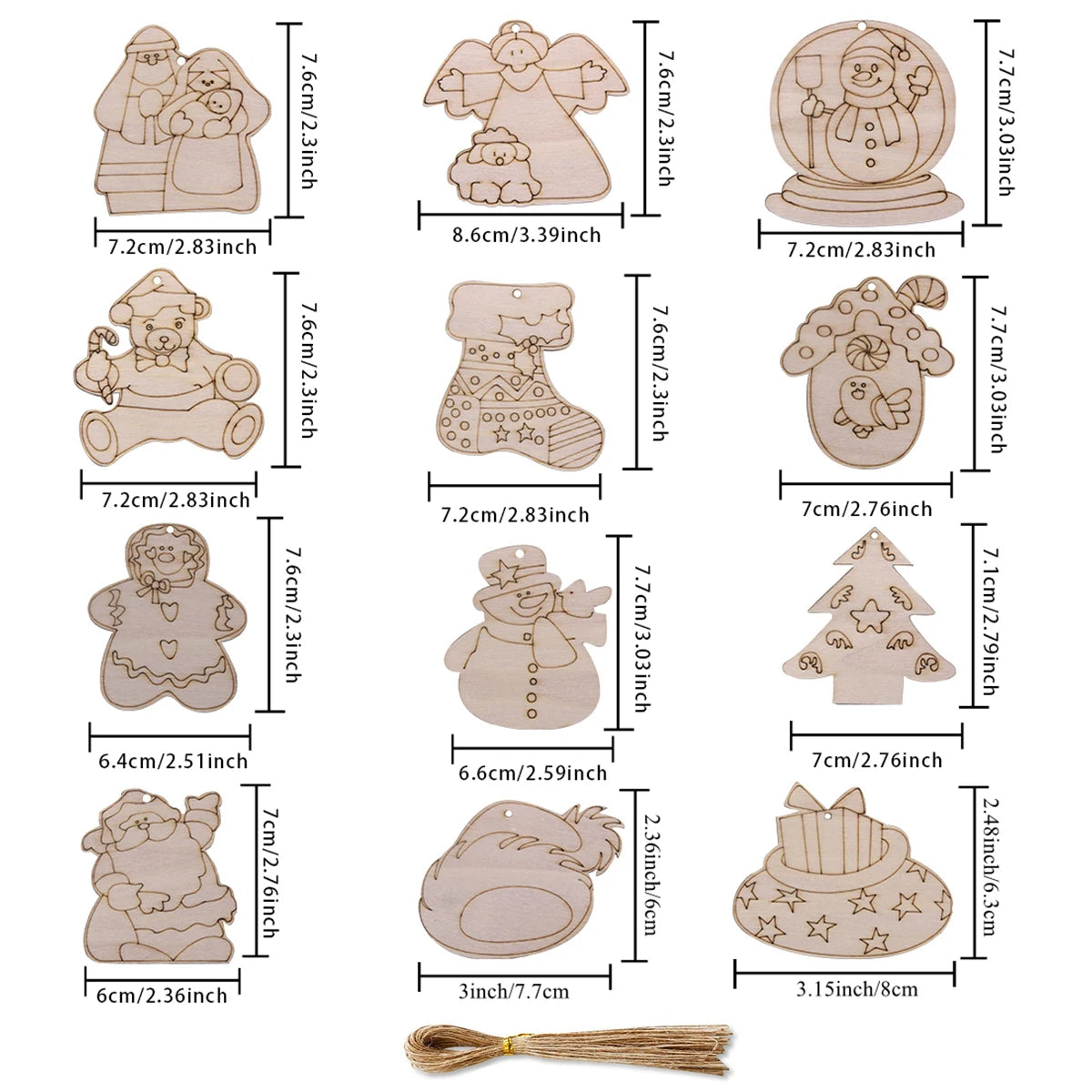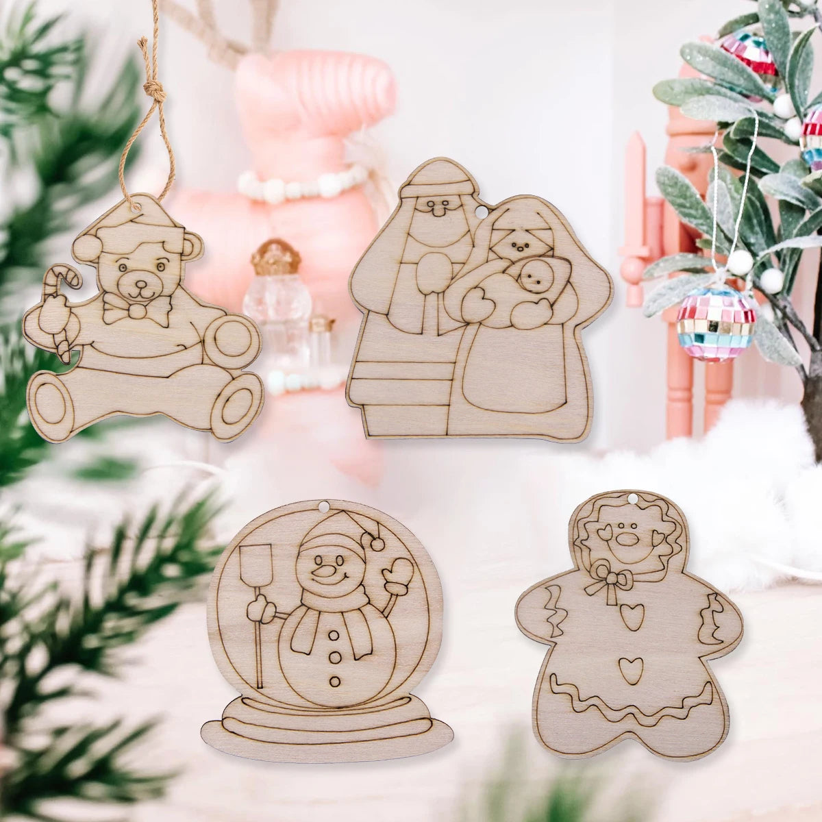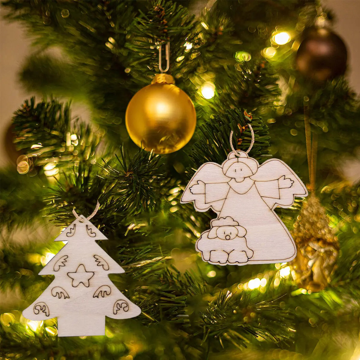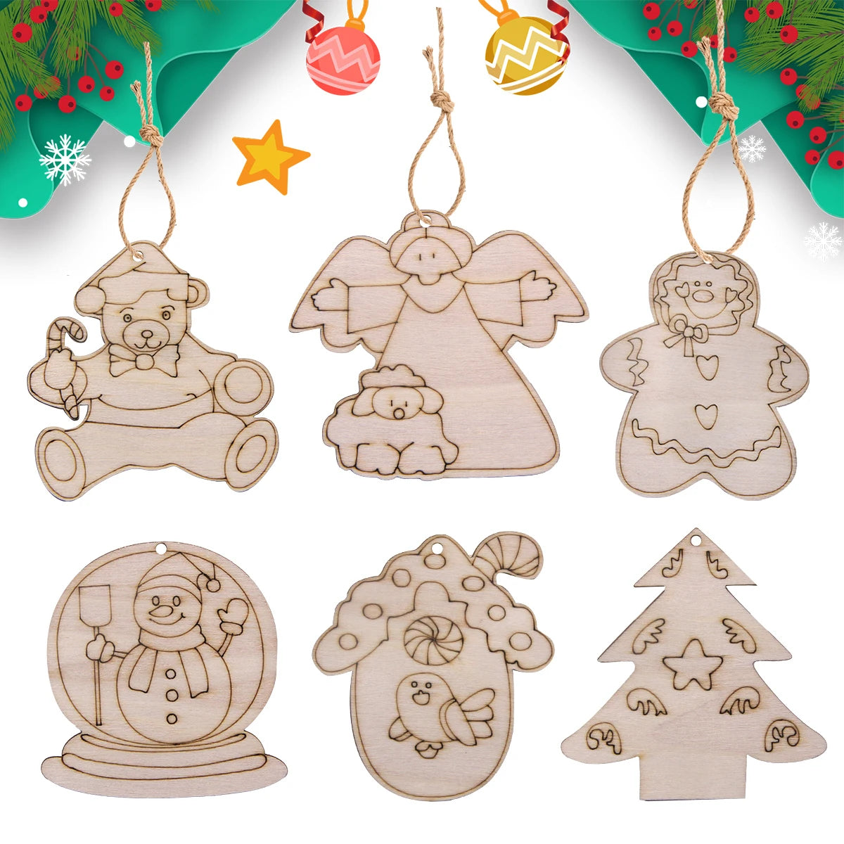 Breng extra sfeer in huis met deze set van 12 houten kerstfiguren die je zelf kunt beschilderen of inkleuren. De set bevat charmante vormen zoals engeltjes, sneeuwpoppen en beertjes, perfect als unieke decoratie voor in de kerstboom of als creatieve bezigheid tijdens de feestdagen. Dankzij het gladde houten oppervlak zijn ze eenvoudig te versieren met stiften, verf of glitters. Leuk om samen met kinderen of vrienden creatief aan de slag te gaan en een persoonlijke touch aan je kerstversiering te geven. Ook ideaal als origineel cadeautje of feestelijke tafeldecoratie.