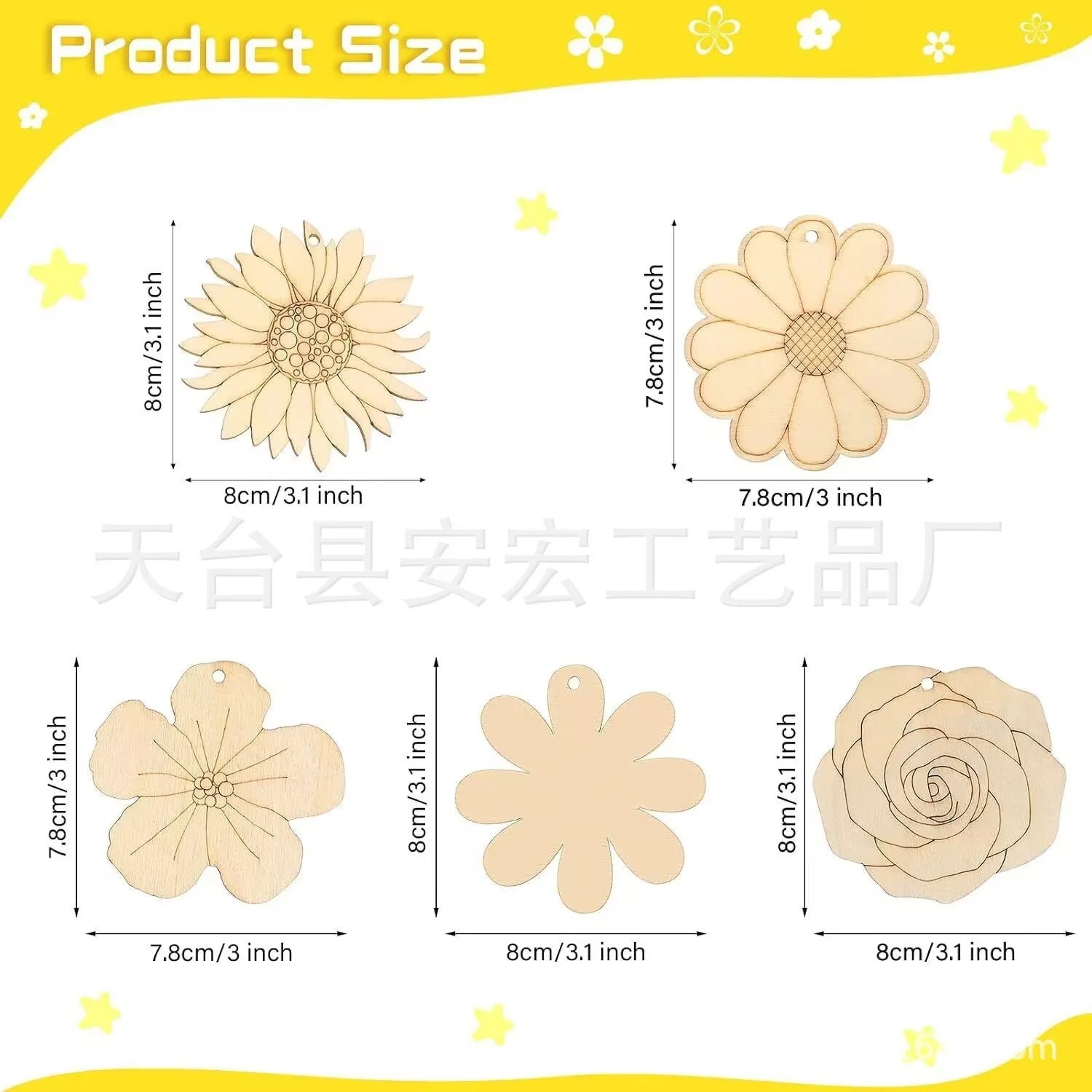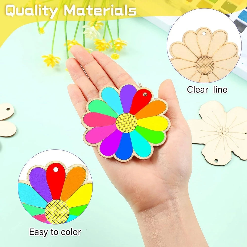 Houten figuur om zelf te kleuren/schilderen – bloemen hangers (10 stuks)