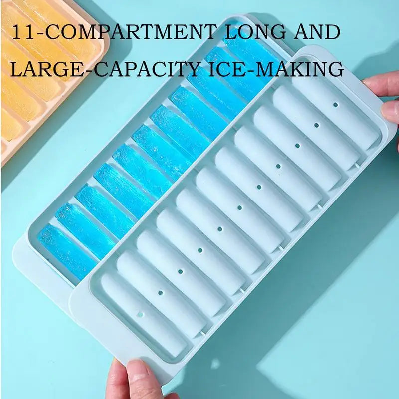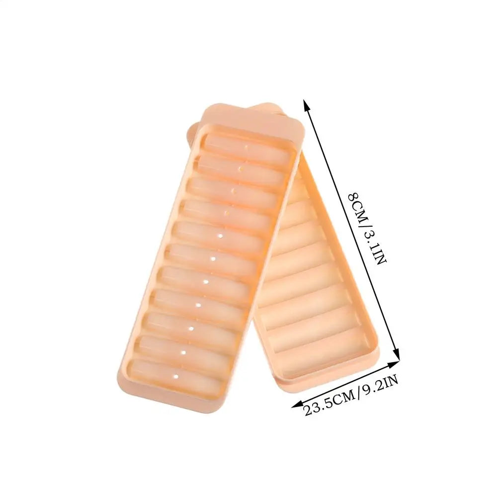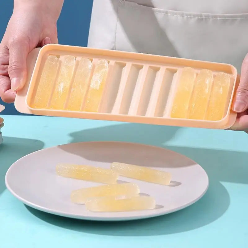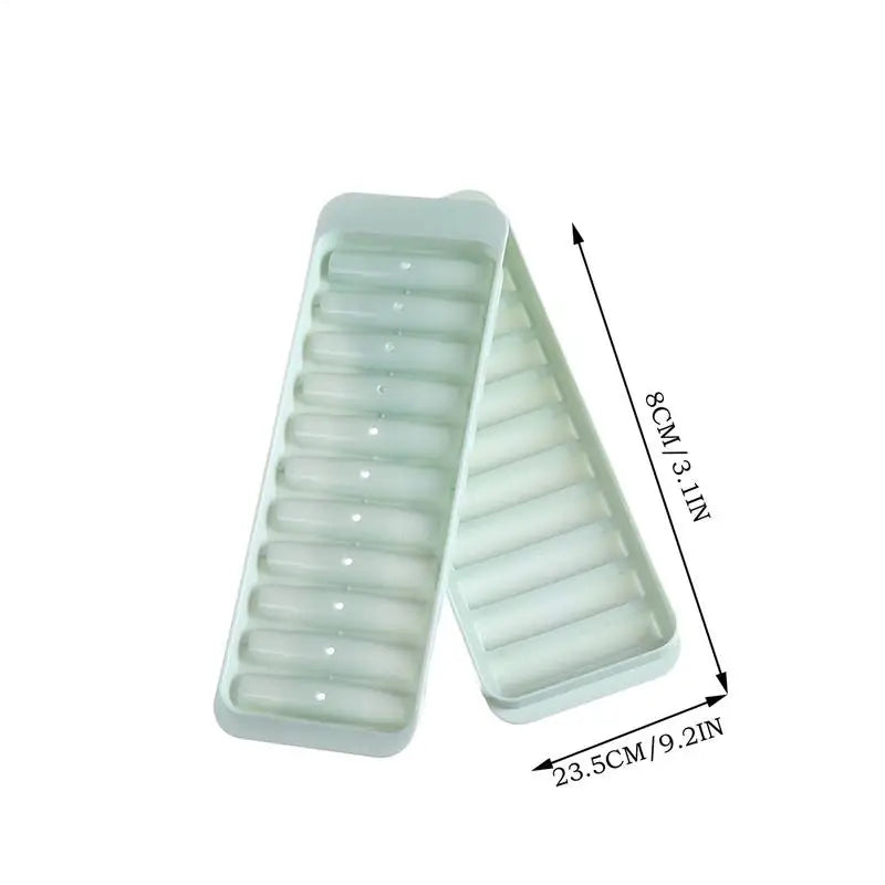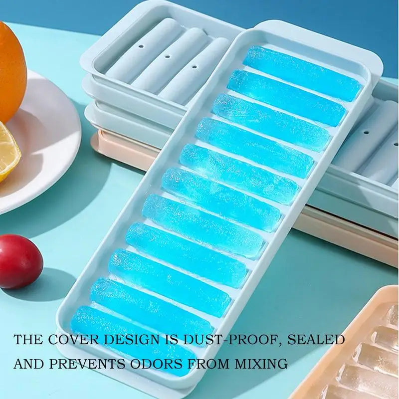 De vorm wordt geleverd met een passend deksel dat voorkomt dat water tijdens het invriezen morst. Bovendien beschermt het de ijsstaafjes tegen ongewenste geurtjes uit de vriezer. Het compacte ontwerp maakt het gemakkelijk op te bergen, zelfs in kleinere vriesvakken.