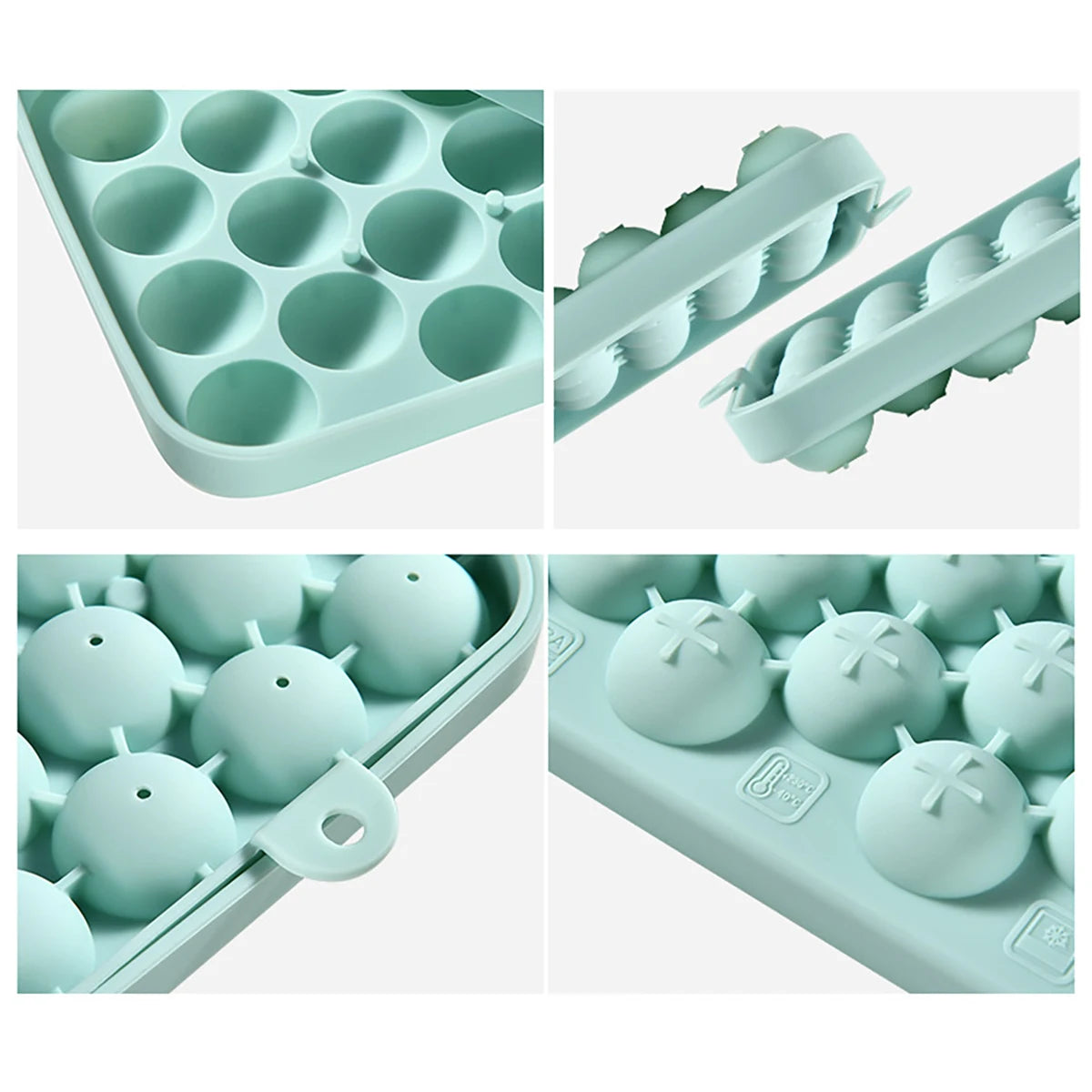 IJsblokjesvorm siliconen met deksel en 25 ronde ijsballen