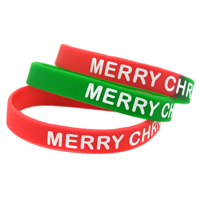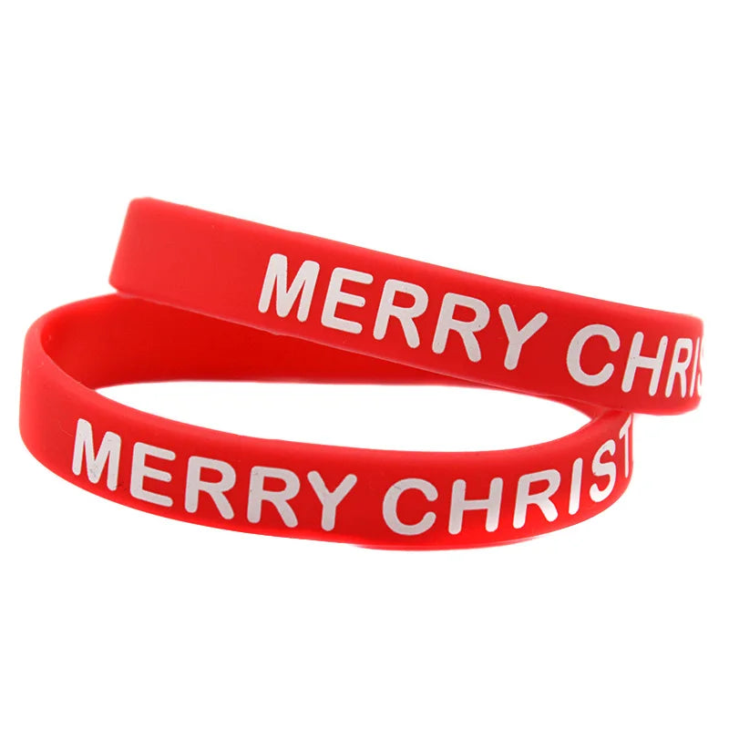 Deze kerst armband met de vrolijke tekst "Merry Christmas" is een ideale accessoire om tijdens de feestdagen een extra vleugje gezelligheid toe te voegen. De armband is gemaakt van hoogwaardig siliconen materiaal dat comfortabel draagt en geschikt is voor langdurig gebruik. Door het flexibele ontwerp past de polsband eenvoudig om de meeste volwassen polsen.