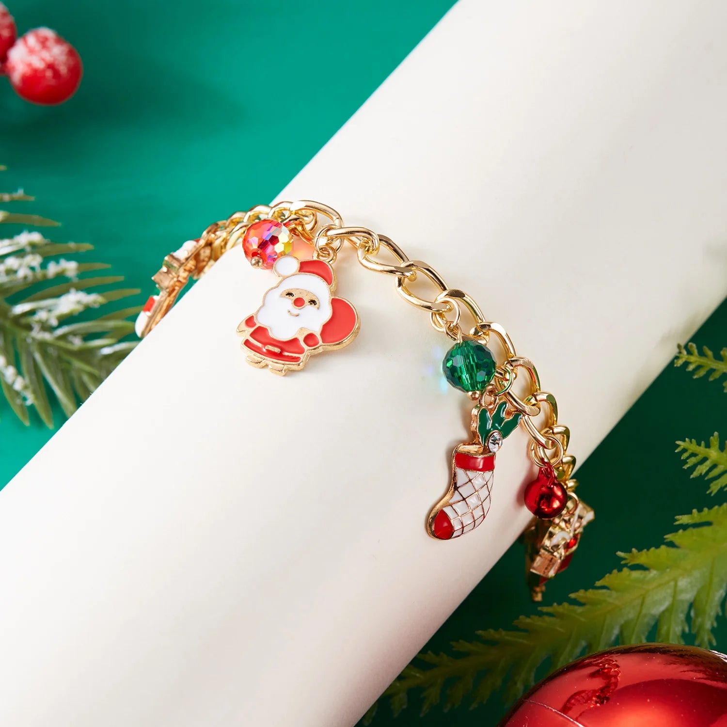 Deze stijlvolle kerst armband geeft elke outfit een vrolijke en feestelijke uitstraling. Met charmante details zoals een kerstboom, sneeuwvlok, kerstman en speelse belletjes, straalt dit sieraad de magie van de feestdagen uit. Ideaal om te dragen tijdens een kerstborrel, familiefeest of een gezellige winteravond met vrienden.