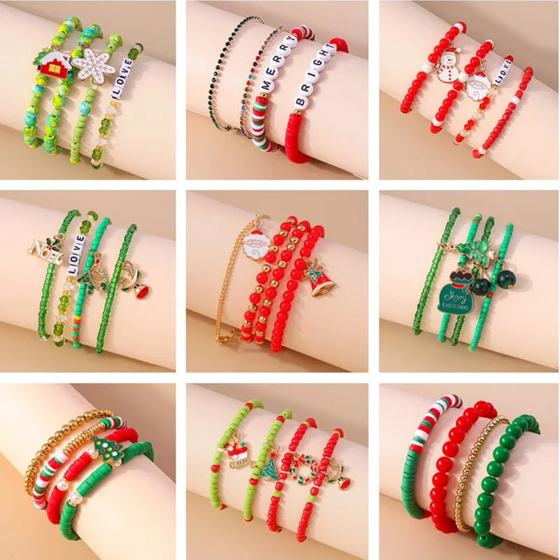 Kerst armband set met bohemian kralen en kerstbedels voor dames