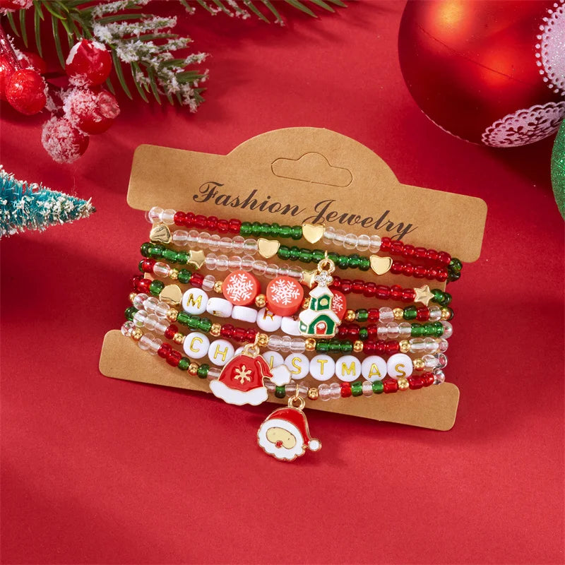 Deze charmante kerst armband set combineert kleurrijke kralen, fonkelende strass details en unieke resin bedels met vrolijke kerstmotieven. Elke armband is ontworpen om direct een warme, feestelijke sfeer toe te voegen aan je outfit en vormt een perfect accessoire tijdens diners, feestjes en gezellige momenten met familie en vrienden.