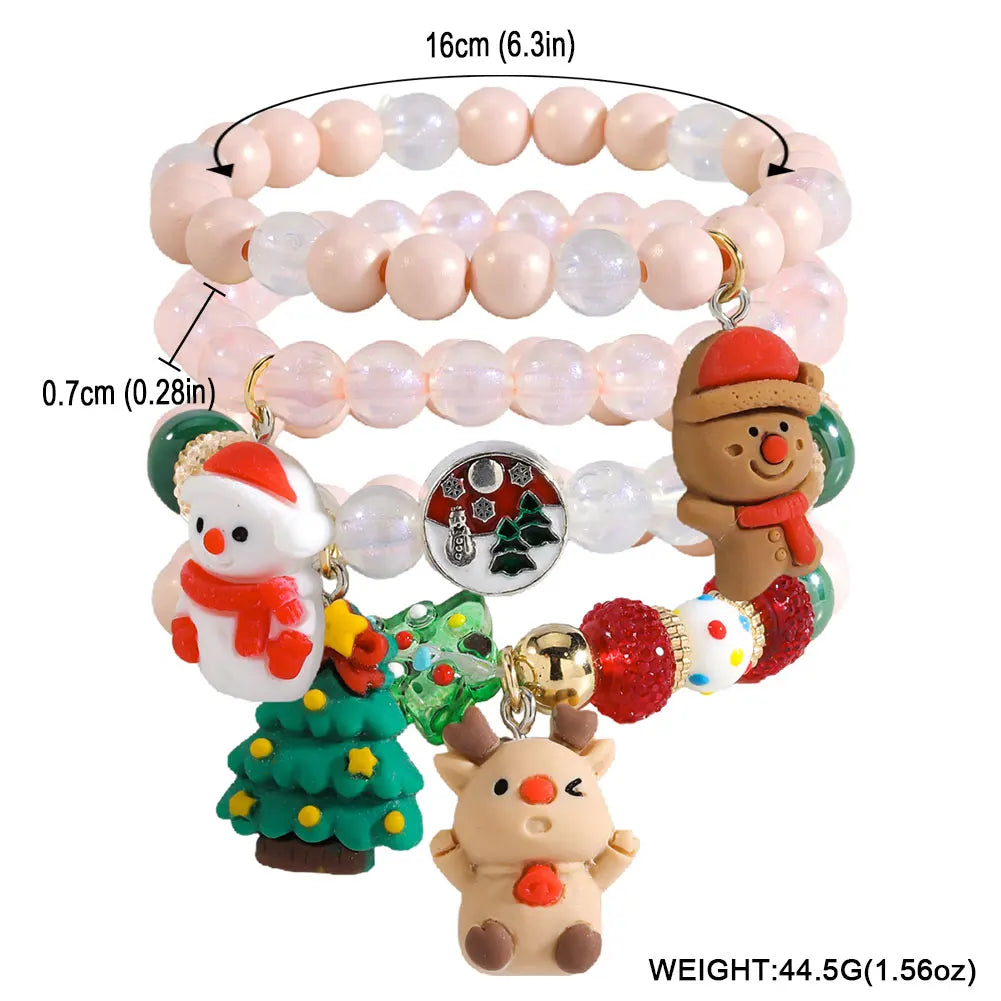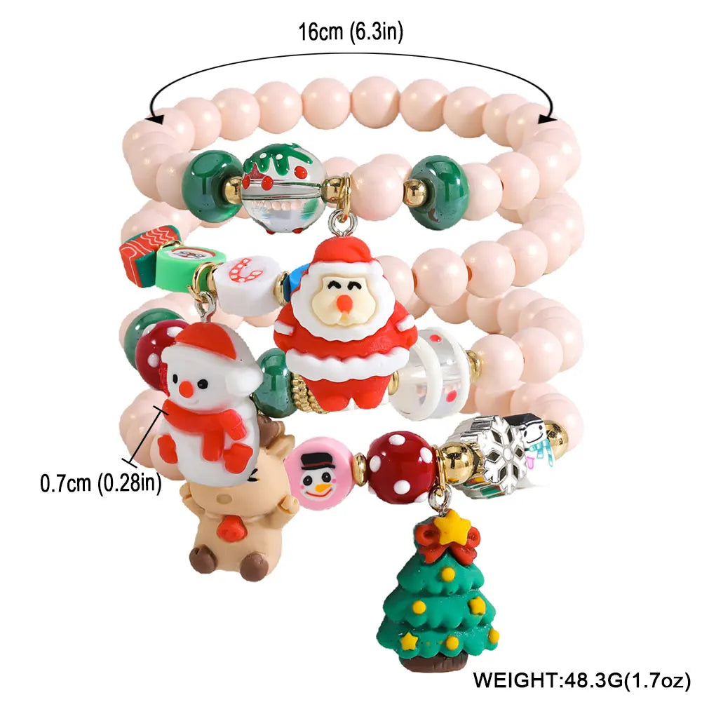 Deze prachtige kerst armbanden set is ontworpen om je pols te laten stralen tijdens het winterseizoen. De set bestaat uit meerdere kralenarmbanden met speelse kerstman- en sneeuwpopbedels die direct een vrolijke en feestelijke sfeer creëren. Perfect om je outfit een warme, gezellige uitstraling te geven.