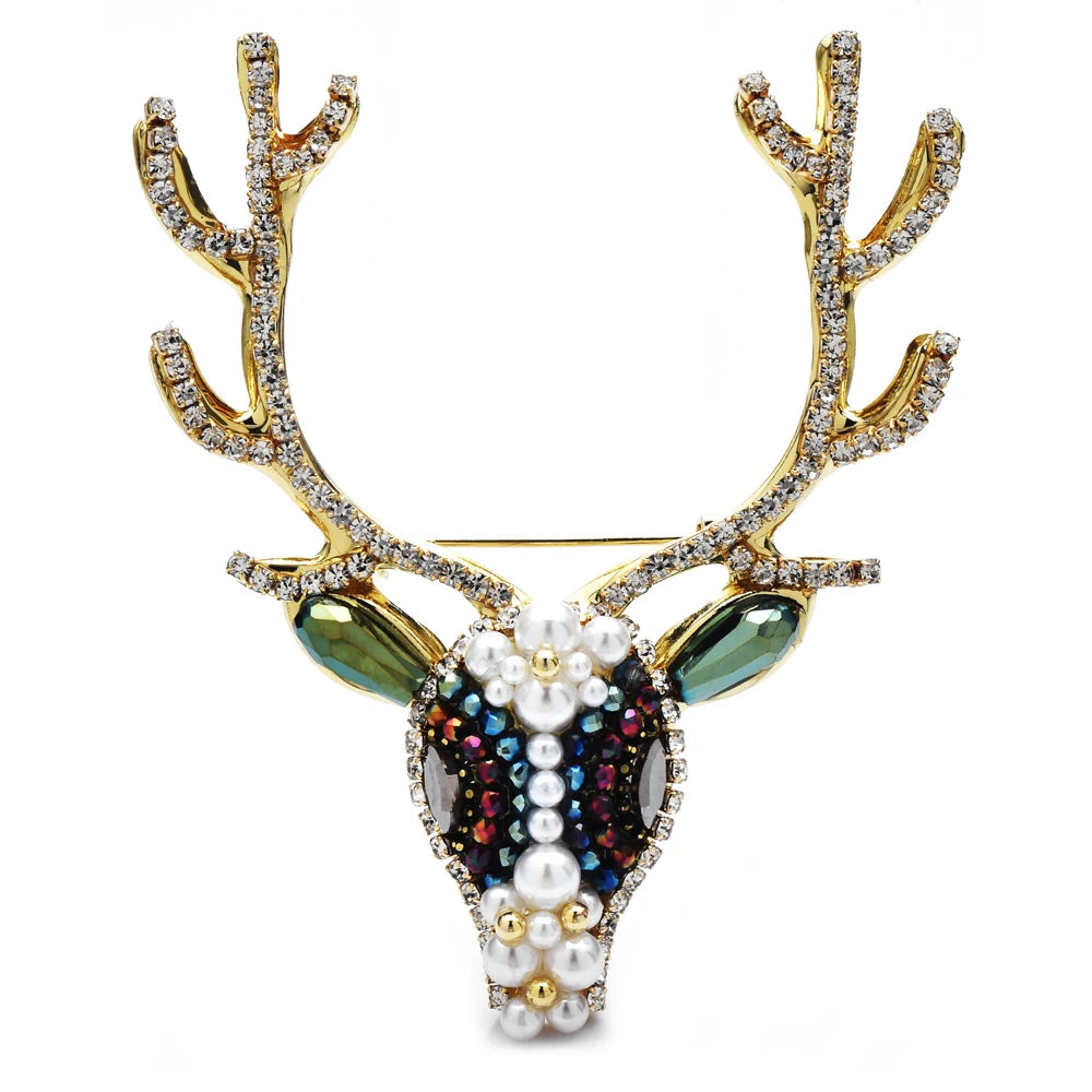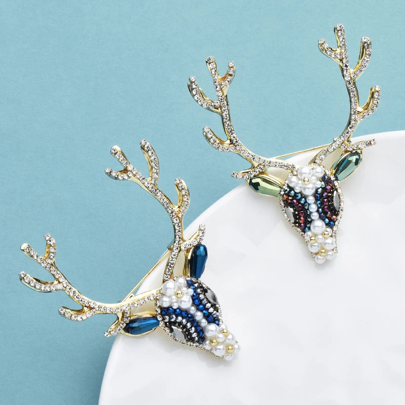 Deze verfijnde kerst broche toont een sierlijk hert met prachtige details die direct de feeststemming oproepen. Het subtiele gebruik van parels en glinsterende kristallen zorgt voor een luxueuze uitstraling, waardoor het een stijlvolle toevoeging is aan iedere outfit.